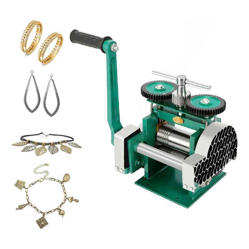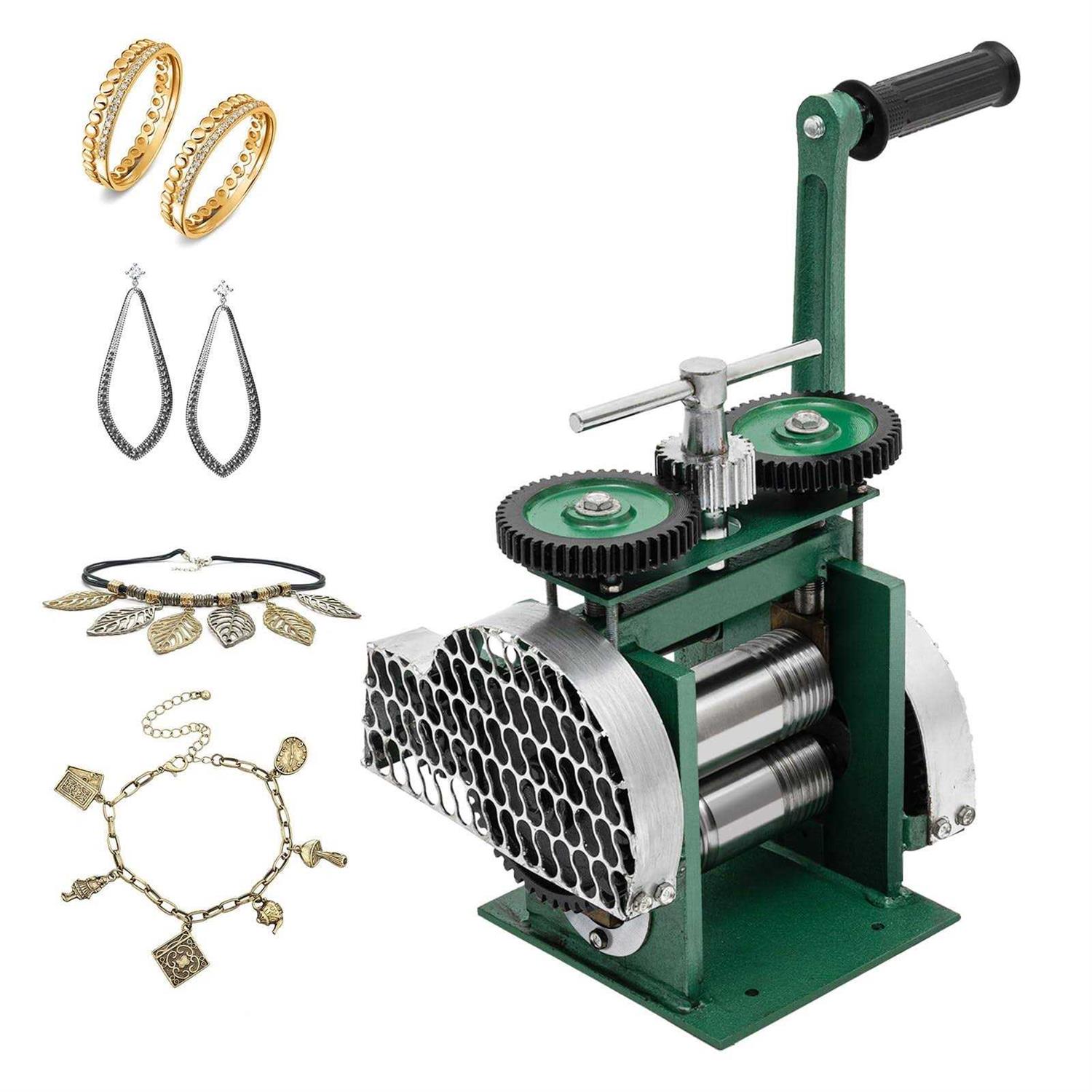 DYRABREST Jewelry Rolling Mill Machine, Manual Combination Rolling Mill Flatten Machine Jewelry DIY Tool Wire Flat Metal Sheet Marking (85mm, Green)
