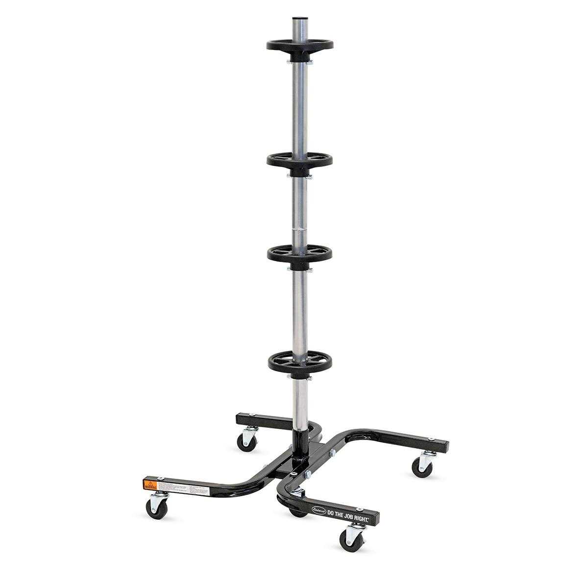 The Eastwood Tire Storage Tree features a light, compact design for quick and easy tire storage while retaining the ability to hold a full set of tires. 275 lbs Maximum Weight Capacity; Holds up to 4 wheels with or without tires installed; Rolls easily on 6 casters; Mobile space saving design stacks wheels and tires;The Steelball bearing Swivel Casters and a rugged steel frame will support up to a total loaded weight of 275 lbs. [124 kg.] yet is completely portable for long-term storage of tires.
