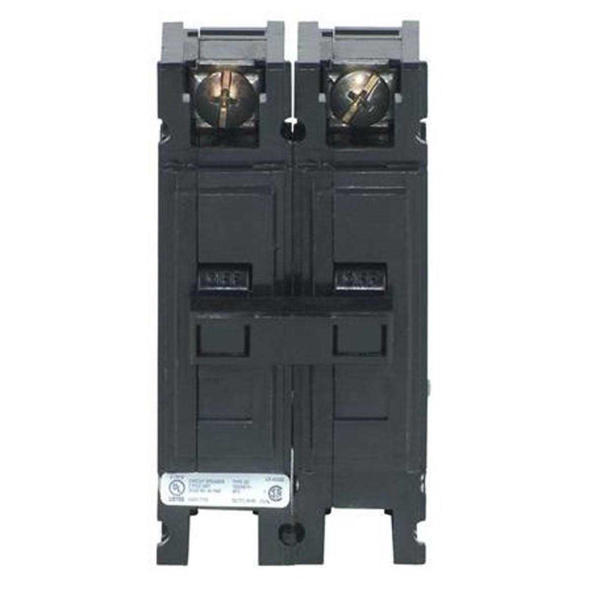 Eaton Quicklag Type QC 2-Pole industrial miniature circuit breaker has an interrupt rating of 10-Kilo-Amps, current rating of 60-Amps and voltage rating of 120/240-Volts AC. This 1-Phase circuit breaker with box lug terminal connection, accommodates copper/aluminum wire of size 14-4-AWG. It employs thermal magnetic, non-interchangeable, LI trip to ensure reliable performance. This circuit breaker supports cable-in/cable-out/panel mounting, making installation easier. This circuit breaker is suitable for heating, air conditioning and refrigeration applications. Circuit breaker is UL 489 and CSA standards.