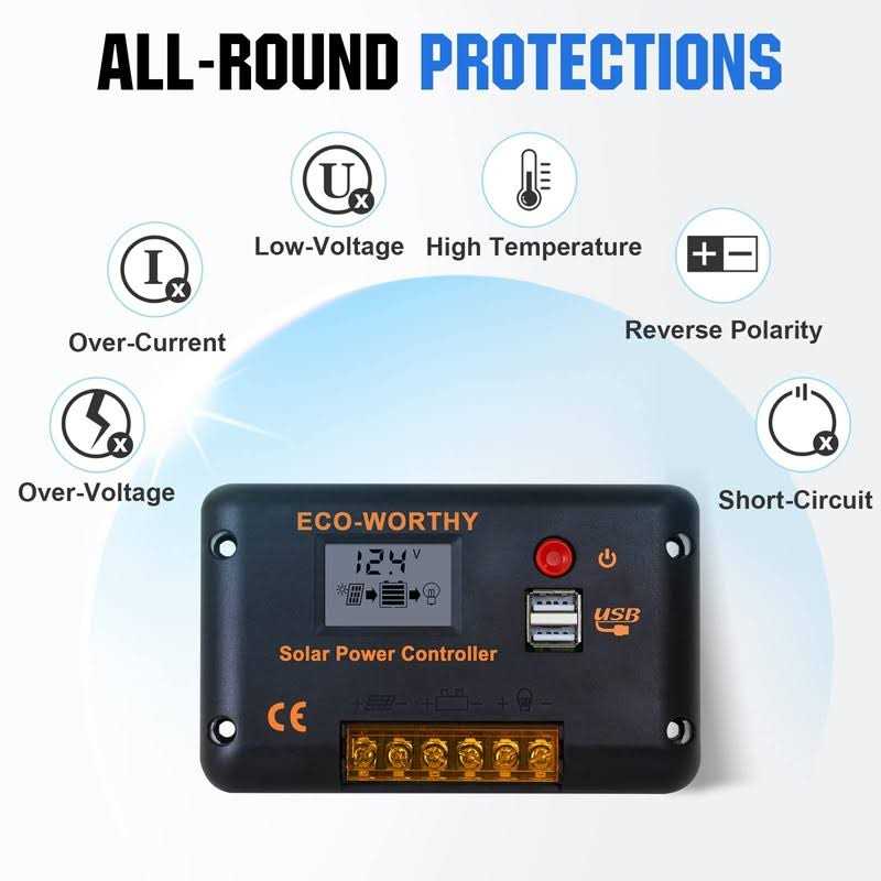 Solar Panels by ECO-WORTHY. Details:Solar Panel kit Specification Type:100W Mono Panel Rated power:100W Maximum/Peak Voltage(Vmp):18V Open Circuit Voltage(Voc):22.41V Maximum/Peak Current(Imp):5.56A Short circuit current (Isc):6.67A Output Tolerance:±3% Temperate coefficient of Isc:(010+/- 0.01 ) %/°C Temperate coefficient of Voc:- (0.38 +/-0.01 ) %/°C Temperate coefficient of power Voc:-0.47%/°C Temperature range:-40°Cto +80°C Frame:Heavy duty aluminum Kind of glass and its thickness:Low Iron, high transparency tempered glass of 3.2mm Size:39.8×20.1×1.4 in(1010mm*510mm*35mm) weight:18.96lbs(8.6kg) 20A Solar Charge Controller Battery voltage :12V/24V auto Charge current :20A Discharge current :20A Max Solar input :<50V Charge voltage :13.7V Discharge stop :10.7V Discharge reconnect :12.6V USB output :5V/2A Self-consume : <15mA Operating temperature :.