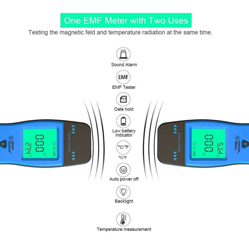 EMF Meter, Household Radiation Detector, Smart Sensor Digital LCD, EMF Detector Dosimeter Tester Counter
