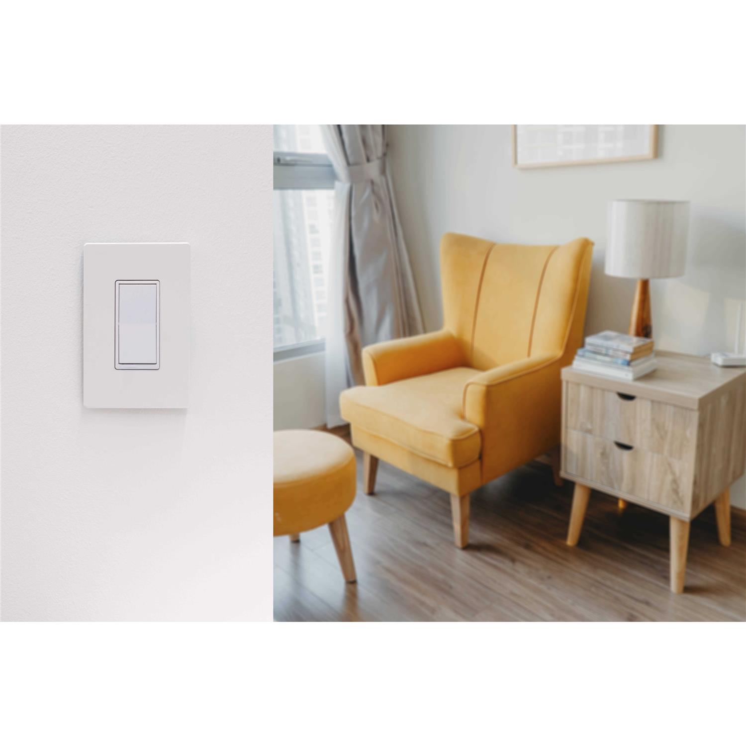 Revolutionary design – QuickFit and SimpleWire technologies offer groundbreaking home automation features. Unique advancements make the controls easier to install and more reliable than ever. QuickFit – Improved components reduced the housing depth by up to 20% compared to previous models and eliminated the need for heat tabs. QuickFit enhancements are the ideal solution for older-style switch boxes, multigang configurations or any other application with limited space. Light-commercial capable – Rated for universal 120/277VAC use, the switch works in a variety of systems. Common home installation is supported with 120VAC smart controls or light-commercial applications are possible through 277VAC automation devices. Multi-switch operation – The switch is not a stand-alone device. It must be used with a Wi-Fi, Z-Wave or Zigbee smart control for home automation. A smart switch or dimmer and as many as four add-on switches can be linked for operation from up to 5 locations. Versatile compatibility – Partner the add-on switch with any smart switch, dimmer or fan control from Enbrighten and UltraPro to upgrade traditional 3-way setups. The add-on switch offers the same functions as the primary switch.