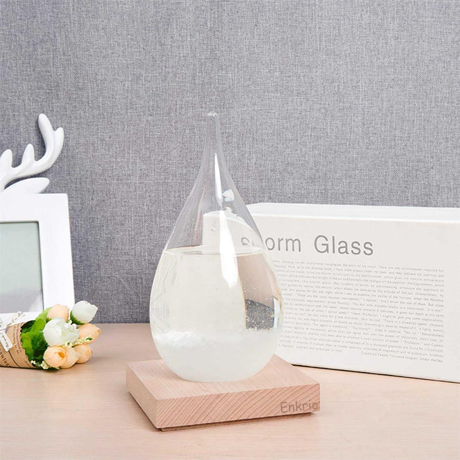 Weather Stations by Enkrio. Details: Romanticideal gift for Thanksgiving Day ,Christmas, Valentine’s Day, Mother’s Day, Birthday, Wedding Anniversary to friend, family. History of Storm Glass History of Storm Glass 1. The weather forecast storm glass was an instrument which consists of a special liquid placed inside, can help you judge the weather pattern. 2. The storm glass became popular with people in the 1860s, it was promoted by Admiral Robert FitzRoy. Previously, people used the storm glass as a weather prediction device in the 17th century, the inventor is still unknown. 3. Simple & Unique Home Decor 4.