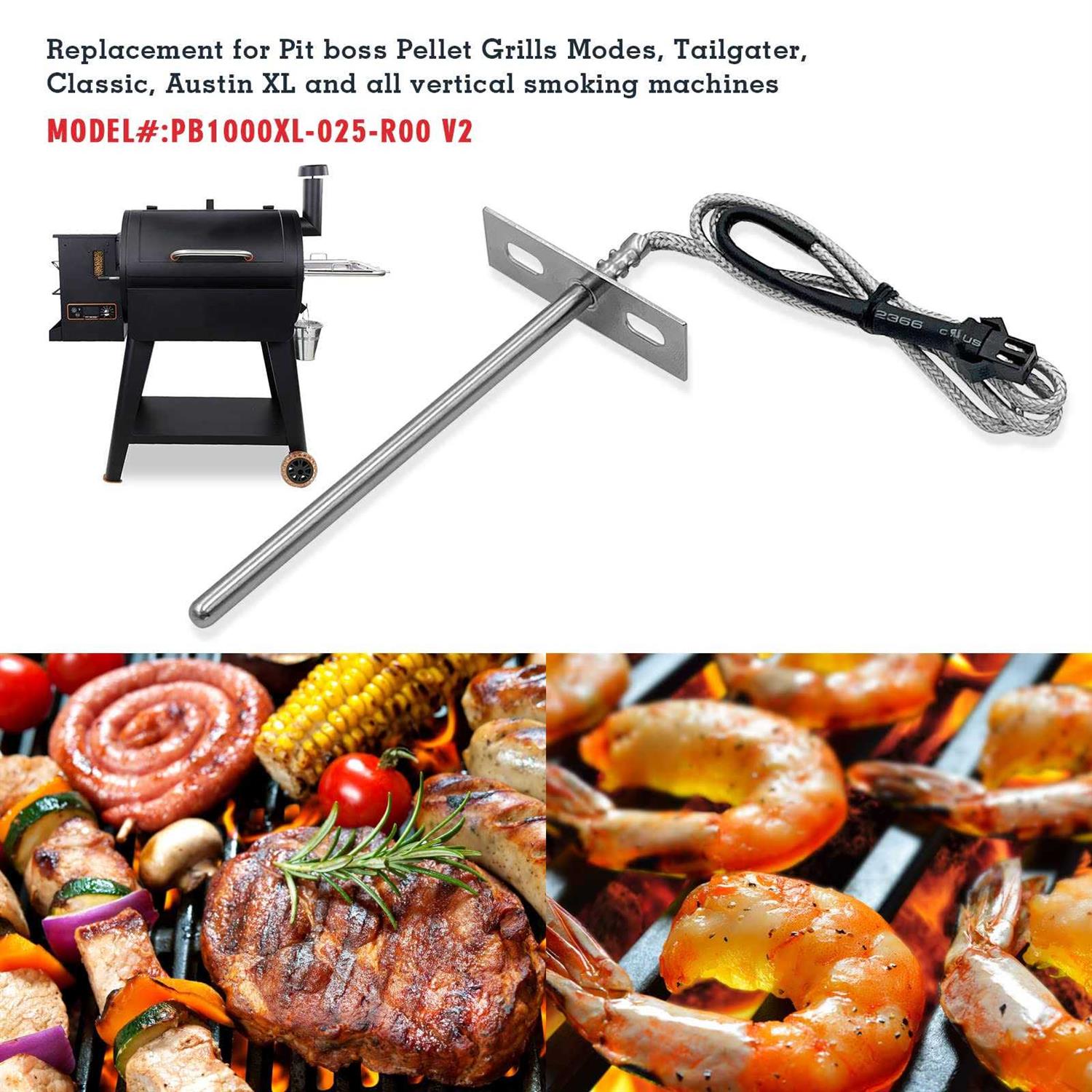 PERFECTLY COMPATIBLE- RTD probe temperature sensor compatible with Pit Boss Tailgater, Classic, Austin XL and All vertical smoking machines, with good water resistance! EXCELLENT QUALITY- The probe is 304 stainless steel, which has excellent processing performance, high toughness, and excellent high temperature and low-temperature resistance! Produced in strict accordance with SUS304 standard. TEMPERATURE PROBE PARAMETERS- RTD temp sensor probe, 3.5-IN internal grid sensor, 17-IN stainless steel wires length, comes with 1pcs screw and 1pcs nut VERSATILE- Can be used for barbecues and other foods. With the help of Digital Controller, it can monitor the temperature of the meat (smokers and Grills) and the temperature of the environment! Compatible with Pit Boss Tailgater, Classic, Austin XL and all vertical smoking machines, 1000NC Nascar Edition,1000T4,440NC Nascar Edition, Classic,700NC Nascar Edition,820D3,Austin XL,Lexington,Navigator 1150,Navigator 550,Navigator 700,Navigator 850,Pro Series 1100 Combo,Pro Series 1100-PS1 (Lowes),Pro Series 4 Vertical Smoker, Pro Series 820-PS1 (Lowes),Pro Series II 600,Sportsman 1000,Sportsman 1100, Sportsman 500,Sportsman 820