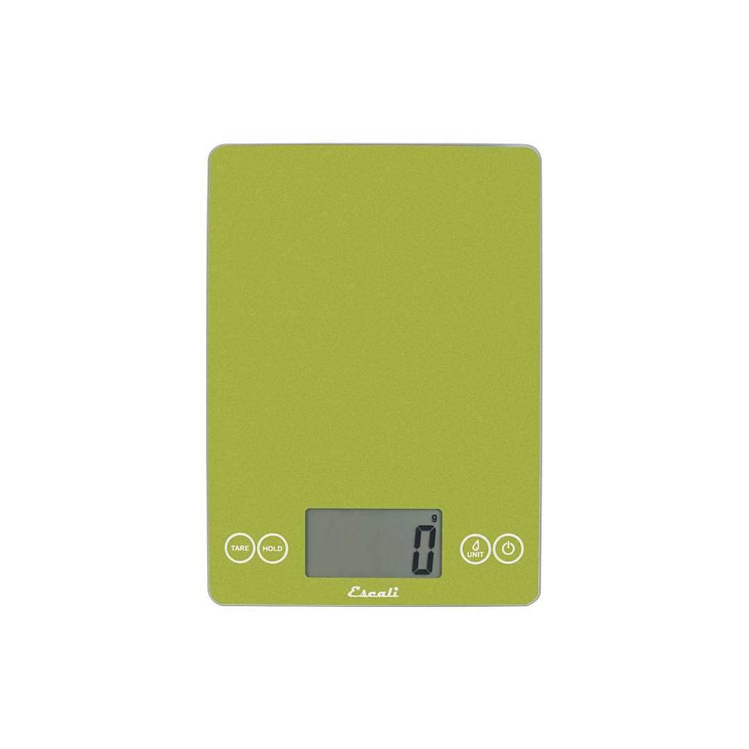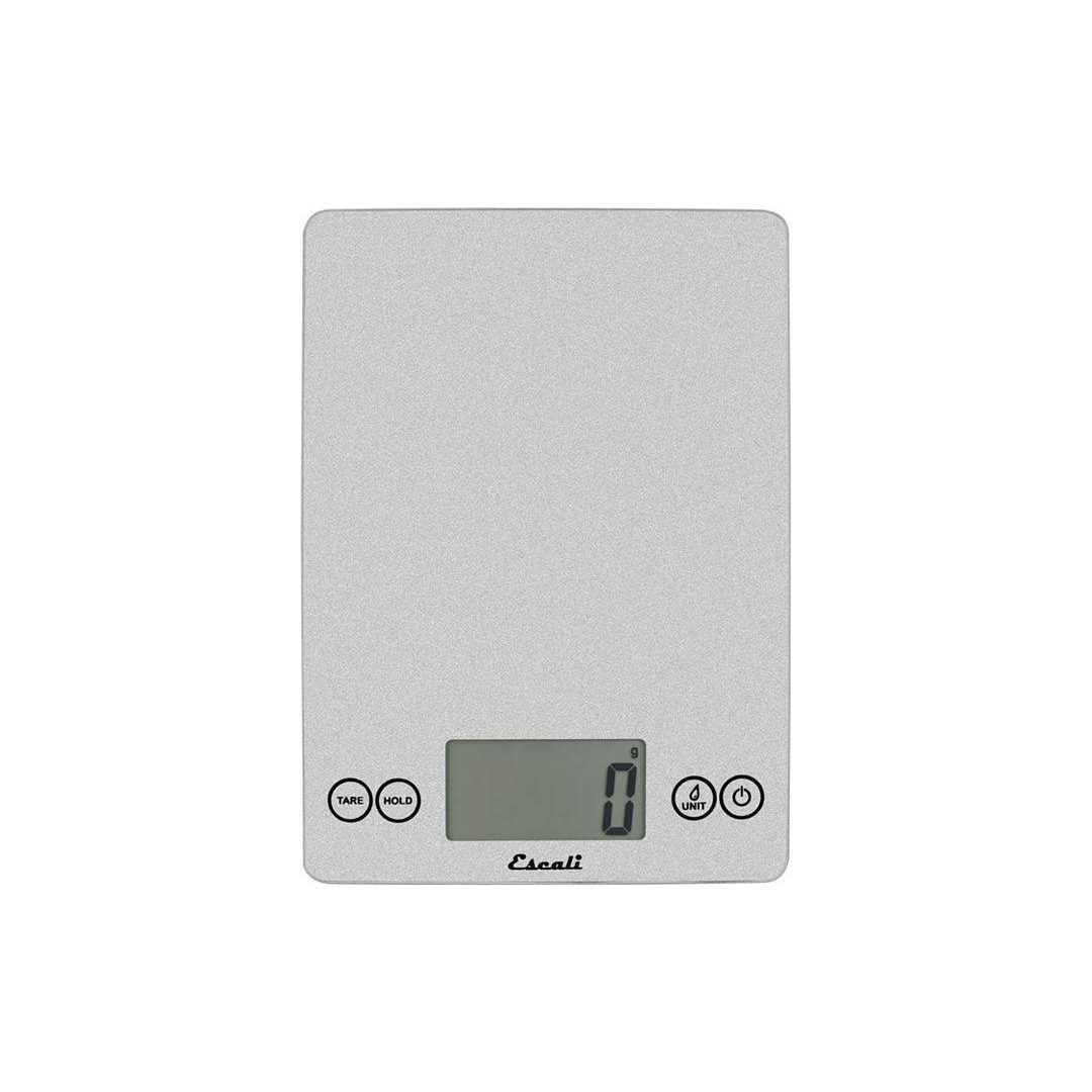 Escali kitchen scales are known for their contemporary design, precise measurements, useful features, and exceptional value. The Escali Arti Digital Scale has the ability to weigh both liquid and dry ingredients in grams, kilograms, pounds, ounces, fluid ounces, or milliliters, offering precise measuring for baking, cooking, and portion control. It measures up to 15 pounds.The easy to read oversized display (50% larger than most kitchen scales) is located between user friendly touch sensitive controls. You can easily obtain the exact weight of food or fluids without their container as the Tare Button resets the scale to zero to subtract the container. If you have an oversized object covering the display, simply press hold and when the scale beeps, remove the container to see the displayed measurement. After 5 minutes of inactivity, the scale automatically shuts off to preserve battery life. Two CR2032 batteries are included in the box, so you can start measuring immediately. The scales dimensions are 9L x 6.5W x 0.75H.