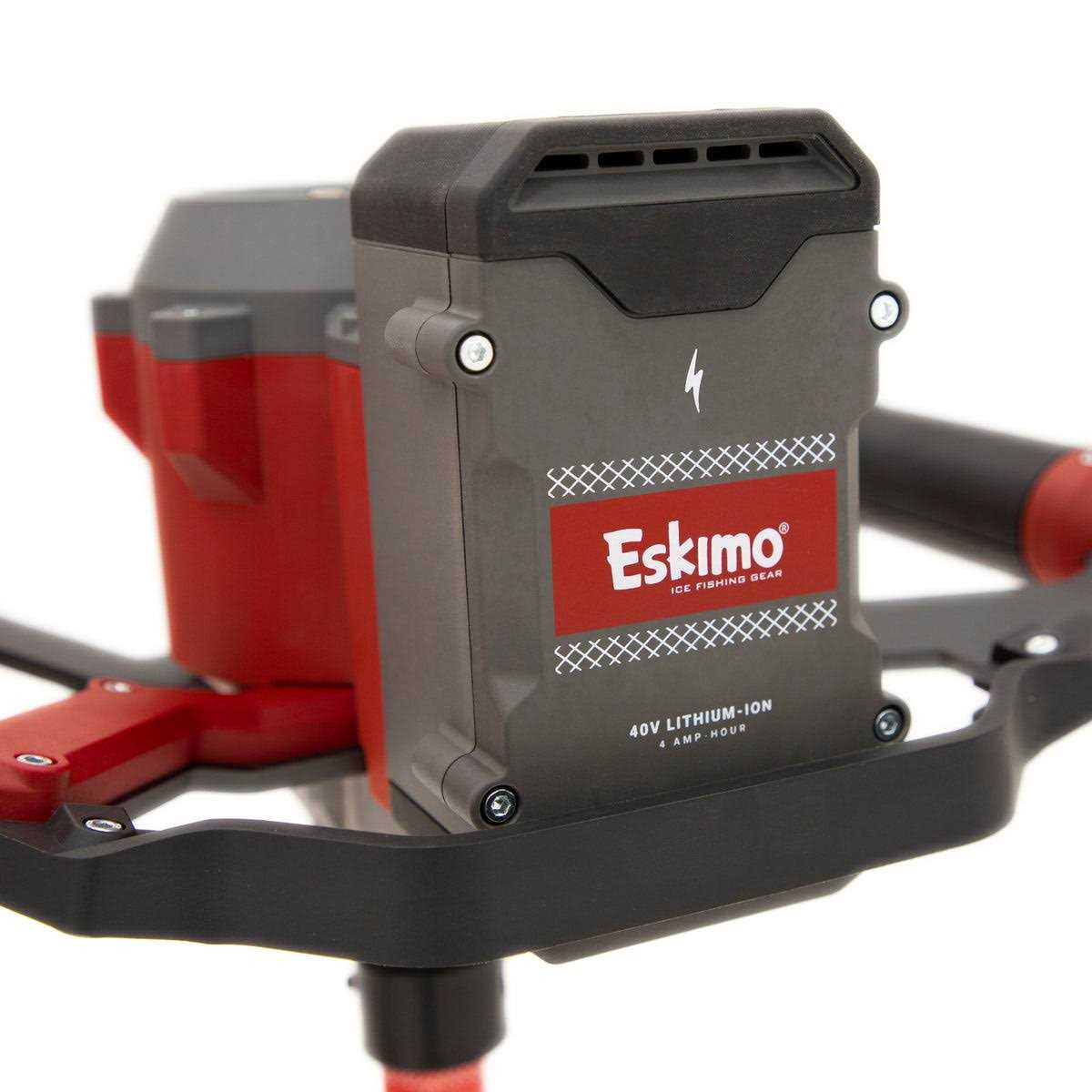 The toughest part of ice fishing shouldnt be drilling holes. At 14 lbs., the E40 composite delivers the full power capability of 40V in an ultra-light package, like never before in its class. With Eskimos history of developing reliable ice augers since 1960, this new auger does everything it needs to do, and nothing it doesnt. Its a balanced, mobile, all-around workhorse with the power to cut all day. The variable speed trigger allows for finesse at the top of the hole, while the Turbo blades deliver a fast, smooth finish at the bottom. The E40 delivers trusted, full 40V power to get the most out of your next trip out on hard water.
