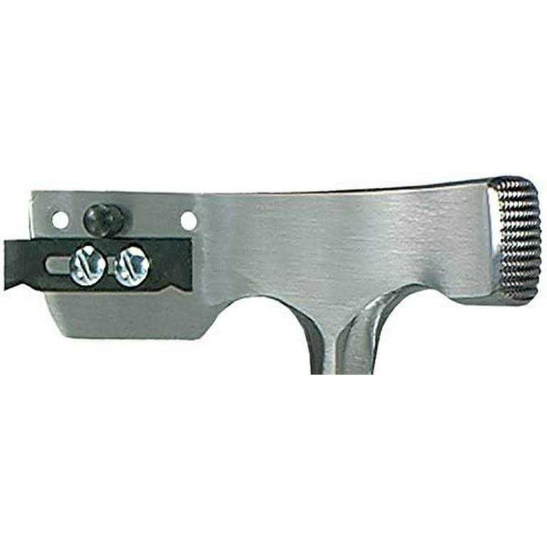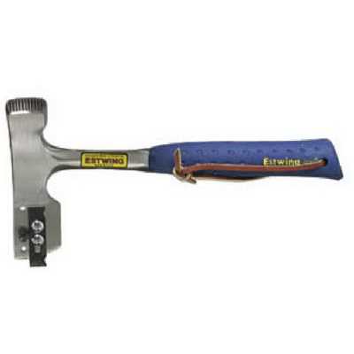 Estwing’s Solid Steel Milled Face Shingler’s Hammer has a fully polished head and handle neck, molded on nylon vinyl grip and a retractable cutting blade. Adjustable for 4 inch, 5 inch, 5-5/8 inch exposure. Cuts and trims all types of composition shingles, standard and metric. Forged, one piece, solid steel to eliminate loose heads. Nylon vinyl grip bonded to handle for comfort and durability. Fully polished with new slotted retractable and replaceable cutting blade.