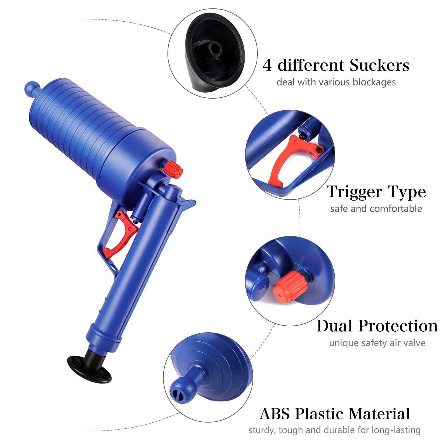 Eterna Air Drain Blaster, Sink Plunger, Air Power Toilet Plunger, Manual Pump Cleaner,Pipe Blaster, High Pressure Plunger for Bath/Toilet/Sink/Floor