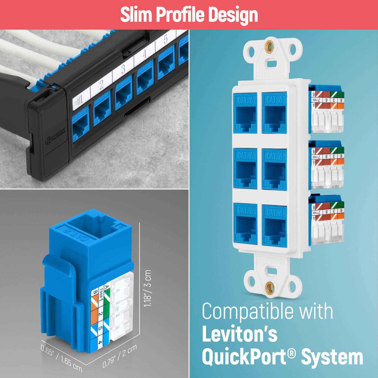 Slim Profile Design – Can be used with a patch panel, wall plate, or surface mount box with standard or slim keystone blank openings. compatible with Leviton QuickPort System and slim Cat6 Decora style wall plates High Performance – Suitable for 1 Gigabit (10/100/1000 Mb/s) up to 328 feet and 10 Gigabit up to 165 feet. Compatible with 23 to 26 AWG solid and stranded copper conductors. Tested up to 500 MHz. High Durability – Corrosion resistant nickel, and gold plated contacts. Each RJ45 keystone jack is made from high-grade plastic, and stands strong against impact and damage. Easy To Use – Just cut the cable jacket and separate the wires, fasten each cord according to color code, push the cables into the RJ45 keystone, cut off any excess wires, place the cap, and done! Wide Compatibility – The jacks can work in conjunction with a standard punch down tool and punch down stand for convenience. Its also compatible with our speed termination tool – easyJACK. Planning on adding a new ethernet jack to your walls? Cat5e and Cat6 ethernet cables offer faster data transmissions and support high bandwidth applications, so they are vital for most network systems. However, it’s difficult to establish an ethernet connection without the proper tools. If you want to install an ethernet jack in your home walls, you can easily save a few bucks by doing it yourself! Jumpstart your home connection with the Everest Media Solutions RJ45 Keystone Jack! These keystone connectors neatly hold your Cat6/Cat5e cord and plug into standard patch panels, wall plates, or surface mount boxes with compatible keystone ports. They are made from high-grade plastic and meet most performance and quality standards. RJ45 jacks make an excellent addition to your tech tool kit! Keystone connectors are widely used for various fields such as home entertainment systems, computers, game consoles, TV, and even telephone services. With the appropriate accessories and know-how, installing a network jack will be a breeze. Start by cutting off the cable jacket, separating and arranging the wires according to color, pushing the wires into the keystone jack, removing the excess tips, and snapping it into the faceplate. You can also use the Everest Media Solutions easyJACK, a standard punch-down tool, or punch-down stand to save time and effort. Still not convinced? Here are more reasons to choose our keystones: Compatible with our Speed Termination easyJACK Tough construction and withstands impact Highly-visible color coding on the side Enjoy gigabit speeds with minimum effort. Add the Everest Media Solutions RJ45 Keystone Jack to your cart TODAY!