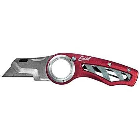Excel K60 Revo Utility Pocket Knife is a lightweight box cutter knife with three locking positions and an open center ring that provides extra grip for safety and support. It has a one handed opening operation and quick blade changing mechanism allows you to quickly and reliably change out blades. The folding design fits perfectly into your pocket or easily clips to your belt. The set comes with a standard heavy duty two notch utility blade, with blade safety guard – handle fits most standard utility blades including Stanley. The knife is designed and built for cutting materials such as wood and sheetrock – for construction, remodeling, and carpentry.