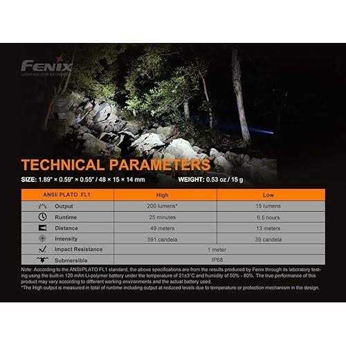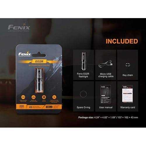 Fenix E02R 200 Lumen Mini USB Rechargeable EDC Keychain Flashlight with EdisonBright Charging Cable Carrying Case (Black)