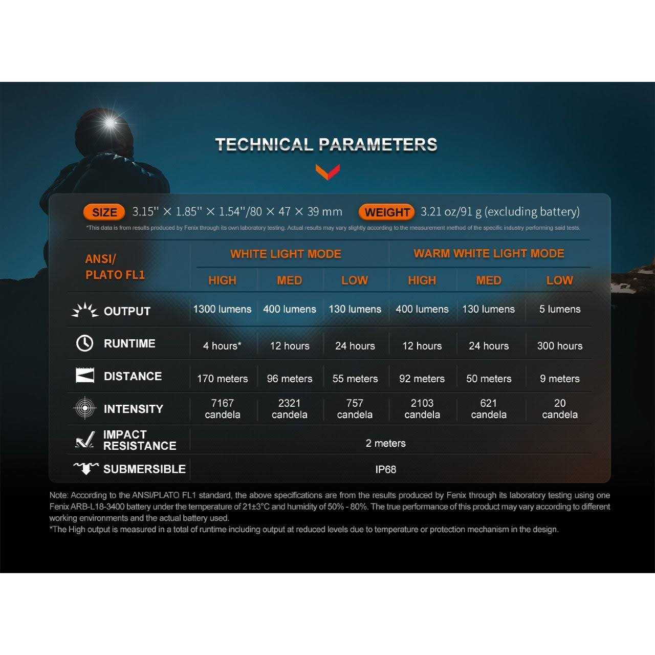• Uses 1 x Fenix ARB-L18-3400 battery (included)