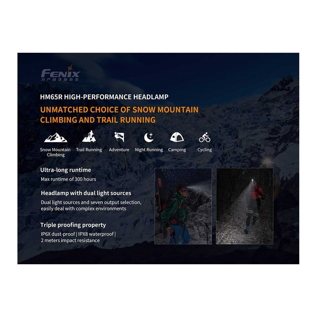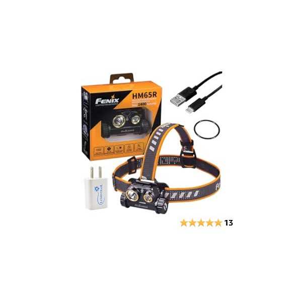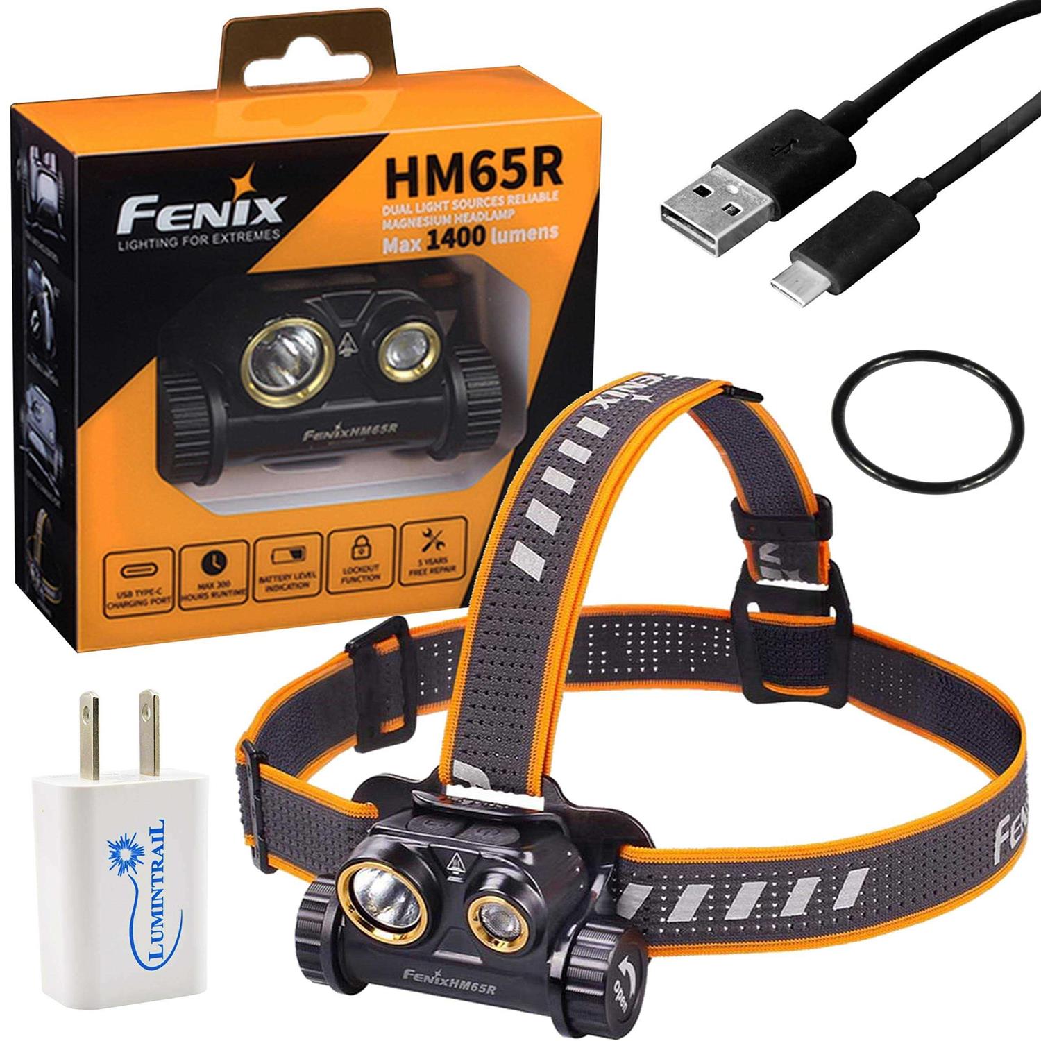 Fenix HM65R USB Type-C Rechargeable Headlamp 1400 Lumens with Lumintrail USB Wall Plug