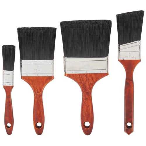 Designed for latex and acrylic paints, these paint brushes contain 50% more bristles than standard paint brushes. The set includes a 1 in. flat brush, a 3 in. flat brush, a 4 in. flat brush and a 2” angle flat brush for painting corners, edges and trim easily. With ribbed beavertail handles for comfortable and controlled operation, this easy-to-clean paint brush set is ready for everything from big jobs to touch-ups.