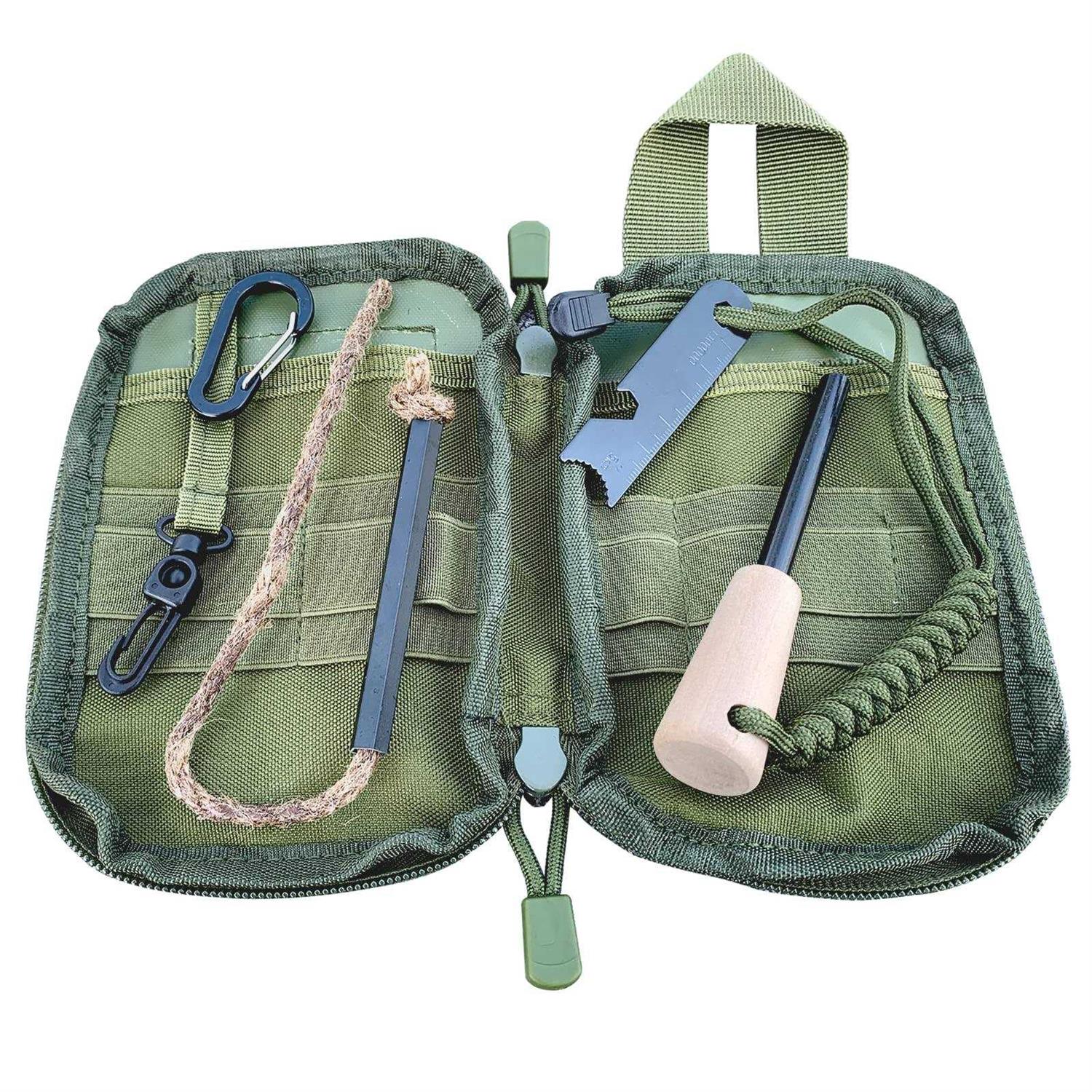 Yeeseok Fire Starter Survival Kit, Larger Ferro Rod with Striker Lanyard 3in Long Flint and Steel, 13.8in Wick Hemp Cord, Multifunctional Bag (Green)