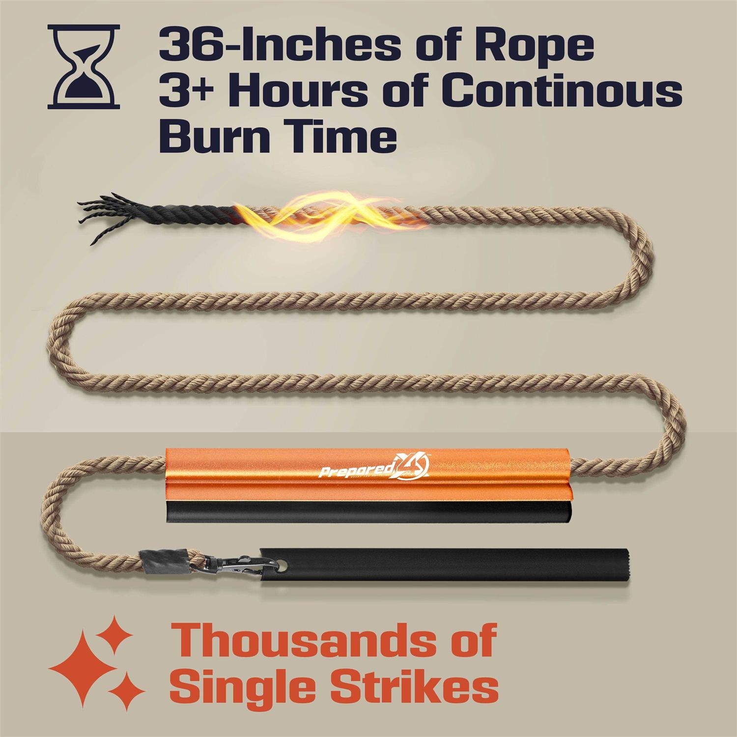 Fire Starter Survival Tool – All-in-One Flint and Steel Fire Starter Kit – Ferro Rod Fire Starter with 36″ Waterproof Tinder Wick Rope and Steel
