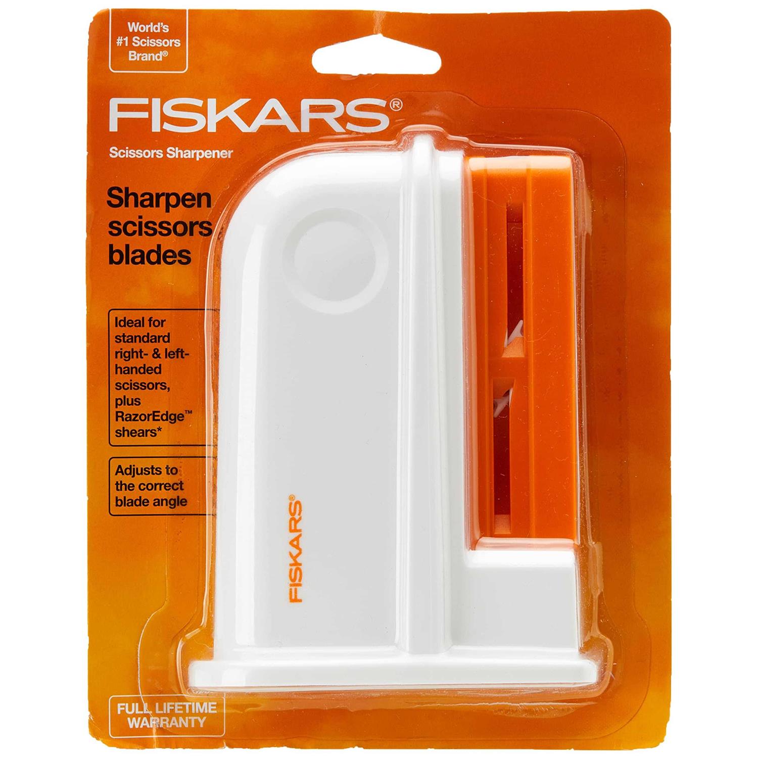 Pencil Sharpeners by Fiskars. Details:Fiskars-Desktop Universal Scissors Sharpener. Restores blades to the perfect cutting edge. Compact design is comfortable to use and easy to store. Sharpener is adaptable for use with left-handed or right-handed scissors. Two slots ensure proper positioning for optimal blade sharpening. This package contains one 5-1/4x4x1-1/2 inch desktop universal scissors sharpener. Imported.