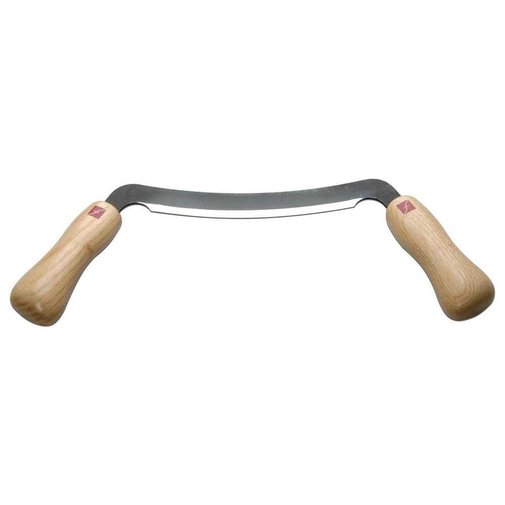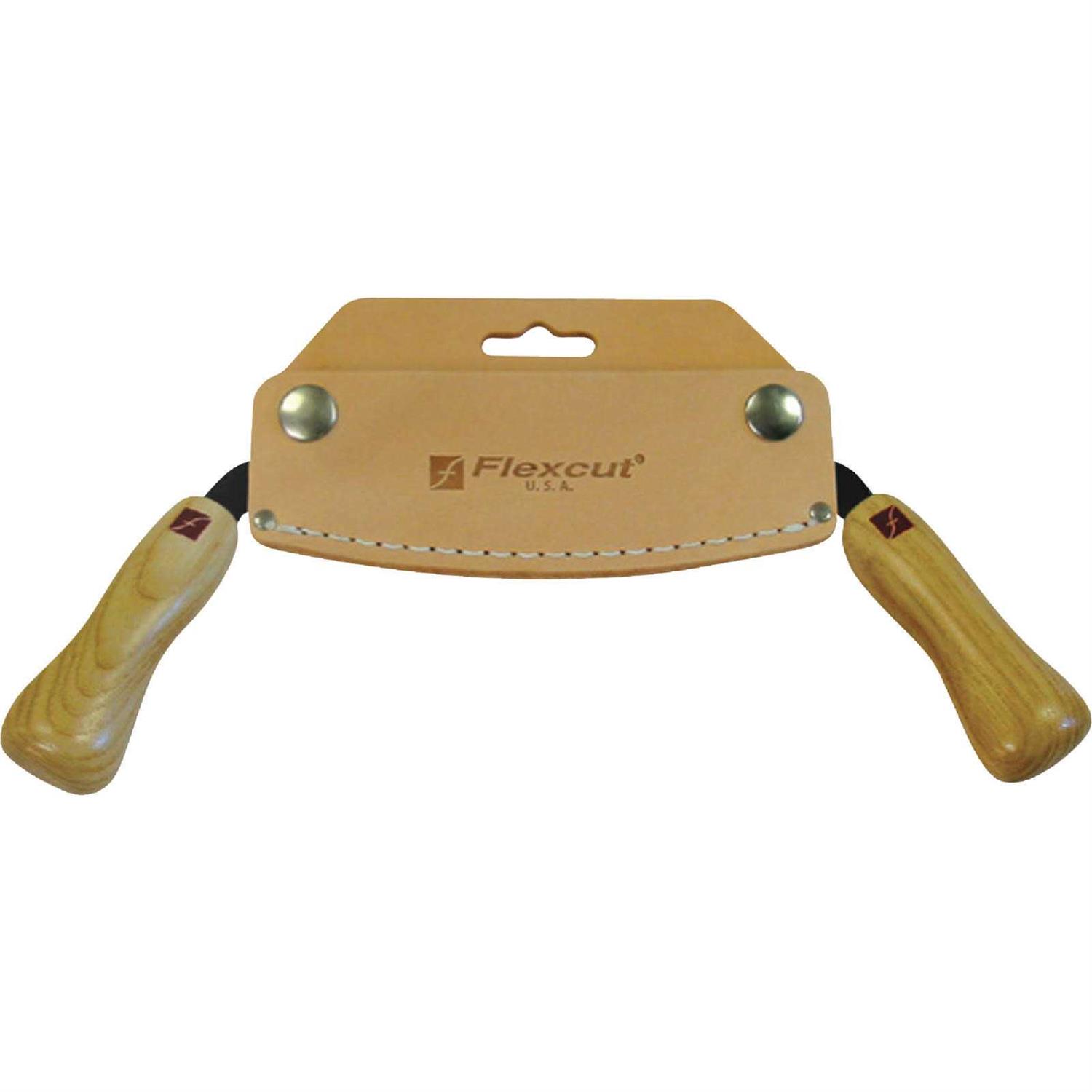 Our flexible draw knife has 5 inches of workable edge designed to flex around contours where large amounts of stock need to be removed quickly. The tool can be flexed to accommodate concave or convex surfaces. Cuts can be made that conform more closely to the finished shape taking less time to sand or scrape. The curved edge gives a skew-like cutting action for a low resistance cut. This tool works great for carving chair legs hollowing chair bottoms or quickly roughing-out decoys.