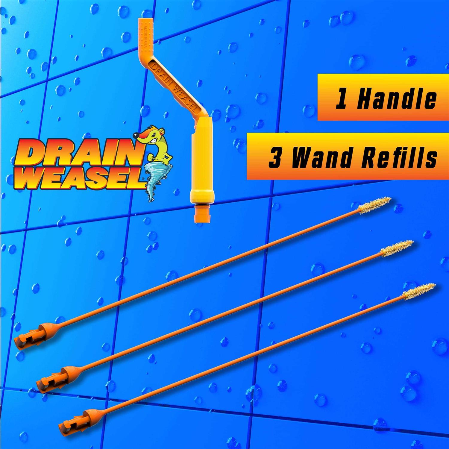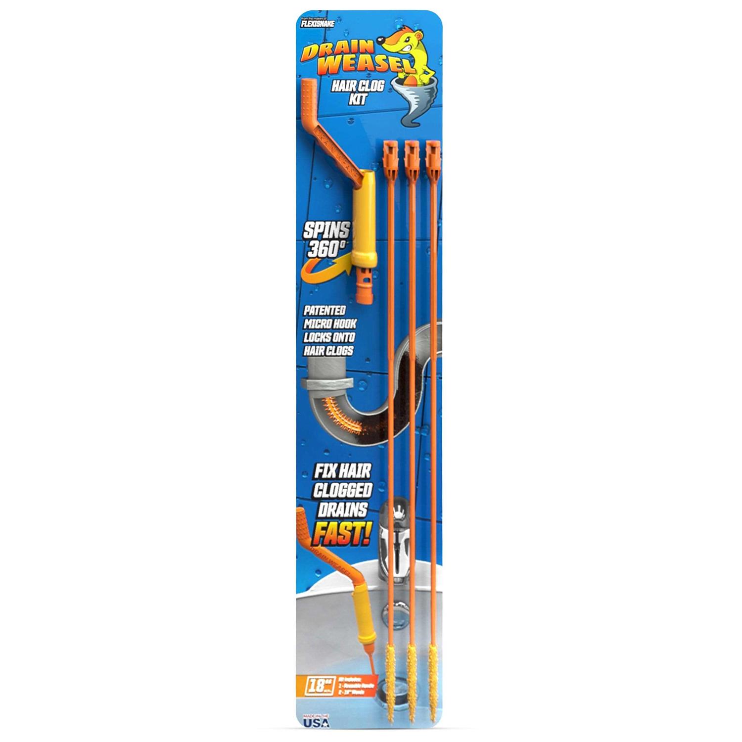 Flexisnake Drain Weasel Clog Remover Kit Includes Rotating Handle and 3 Micro-Hook Refill Wands