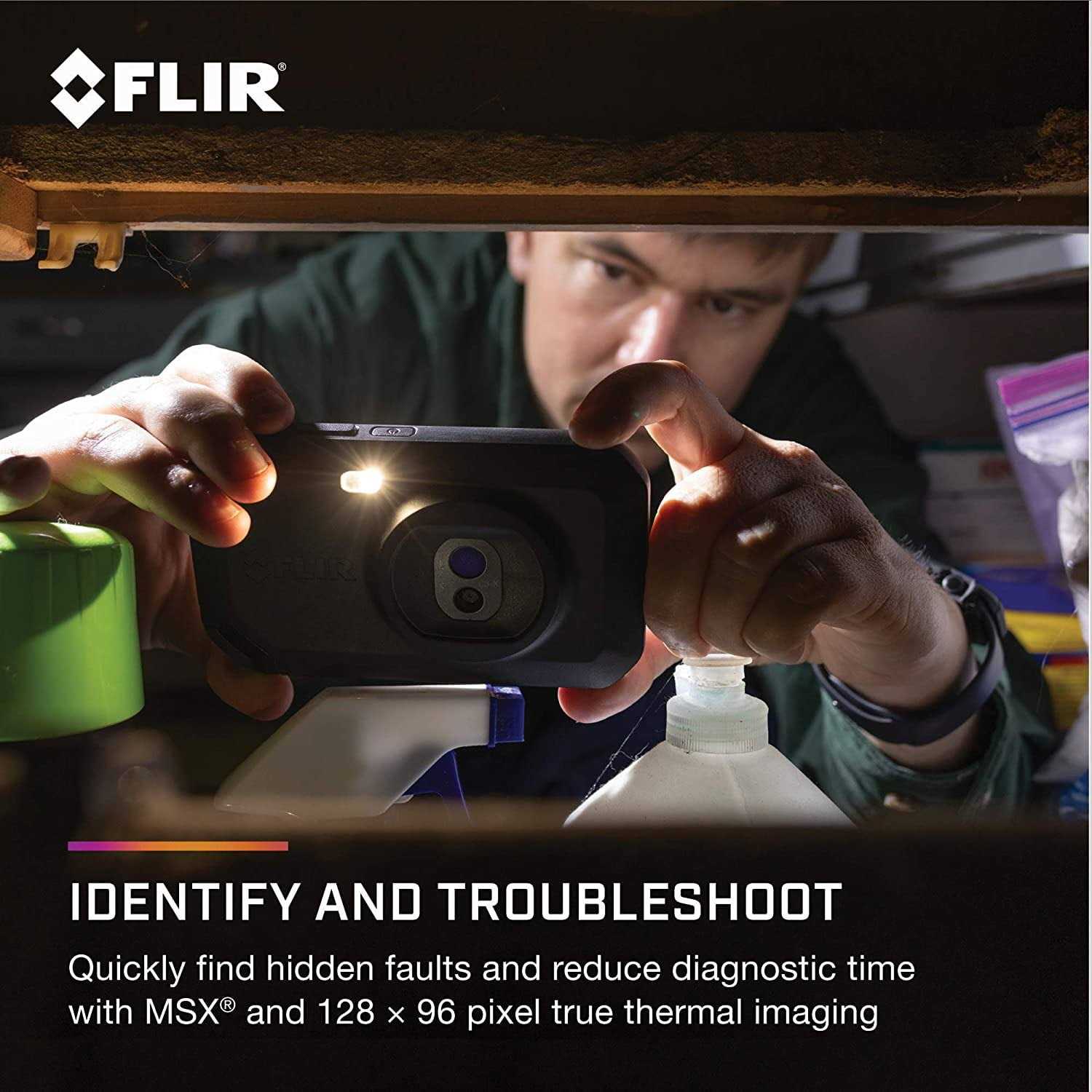 The 128 × 96 (12,288 pixel) resolution thermal imager features a temperature range of -4 to 572°F (-20 to 300°C), MSX (Multi-Spectral Dynamic Imaging), a 5-megapixel visual camera, and LED flashlight. Easily carry the compact thermal imager in your pocket or tool bag. The unit allows you to directly upload and store images from anywhere over the Wi-Fi to the FLIR Ignite cloud where you can organize and back up files. FLIR Ignite cloud connectivity, USB cable, and rechargeable built-in lithium-ion battery.