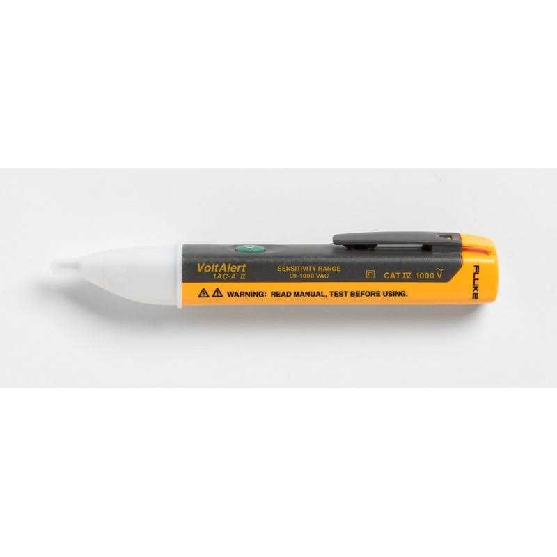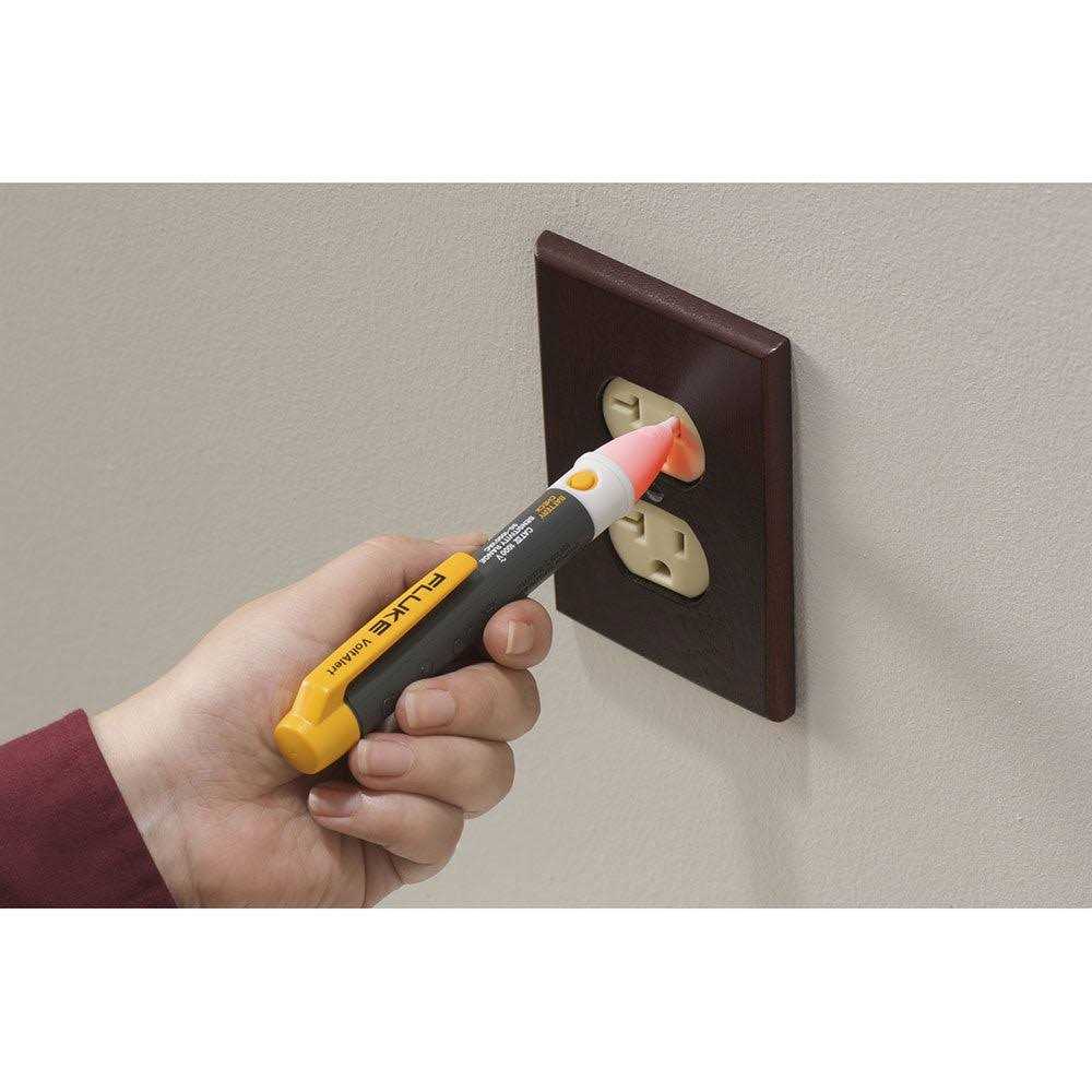 Fluke VoltAlert Blade/round tip AC non-contact voltage tester is suitable for electricians maintenance service safety personnel and homeowners for quickly testing energized circuits at workplace or at home. The Voltbeat technology and continuous self-test gives the user an idea of the circuit condition. The tester has a temperature rating of -10 to 50 deg C. Just place the tip to a terminal strip outlet or supply cord the tip glows and beeper sounds indicating the presence of voltage. Voltage tester is C-Tick listed and CSA/CE certified.