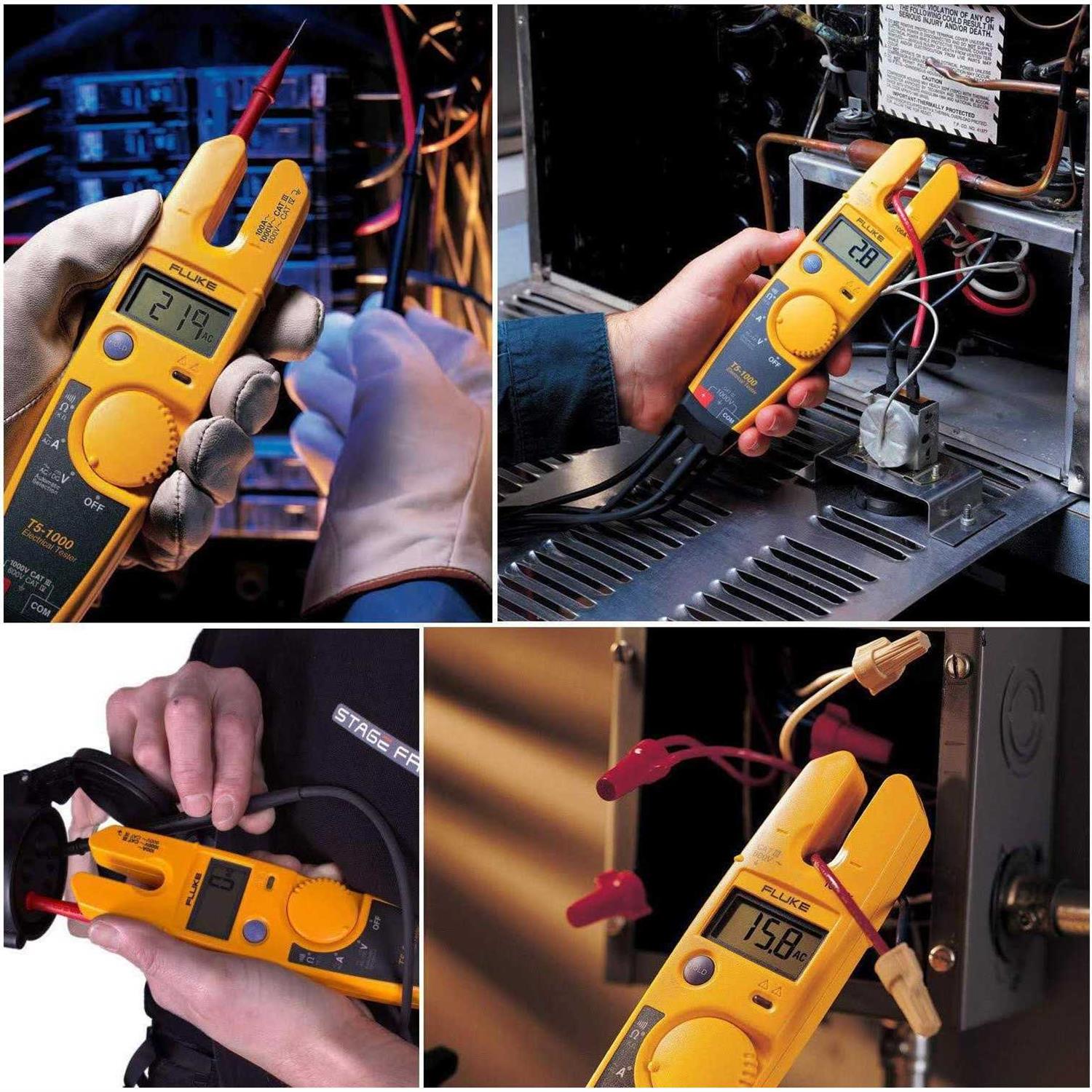 Known as go-to frontline troubleshooting tools by Electricians Fluke Electrical Test Tools are designed for every application from non-contact to contact voltage and continuity detection open jaw current and motor phase rotation testing. Accurate safe and easy to use. The Fluke T5 Electrical Testers let you cheque voltage continuity and current with one compact tool. With the T5 all you have to do is select volts ohms or current and the tester does the rest. OpenJaw current lets you cheque current up to 100 A- without breaking the circuit. Its tough test leads stow neatly in the back of the tester making it easy to tote the T5 in your tool pouch. Detachable SlimReach test probes are customised for national electrical standards. The test leads accept optional accessories such as clips and specialty probes. The optional H5 holster lets you clip the T5 onto your belt. Upgrade to the Fluke T5-600 Electrical Tester 62 Max+ Infrared Thermometer and 1AC Voltage Detector Kit and save. Automatically measures volts AC and volts DC with precise digital resolution. Easy and accurate OpenJaw current measurement. Rugged enough to withstand a 10 ft 3 m drop. Can stay connected much longer than solenoid type tester.