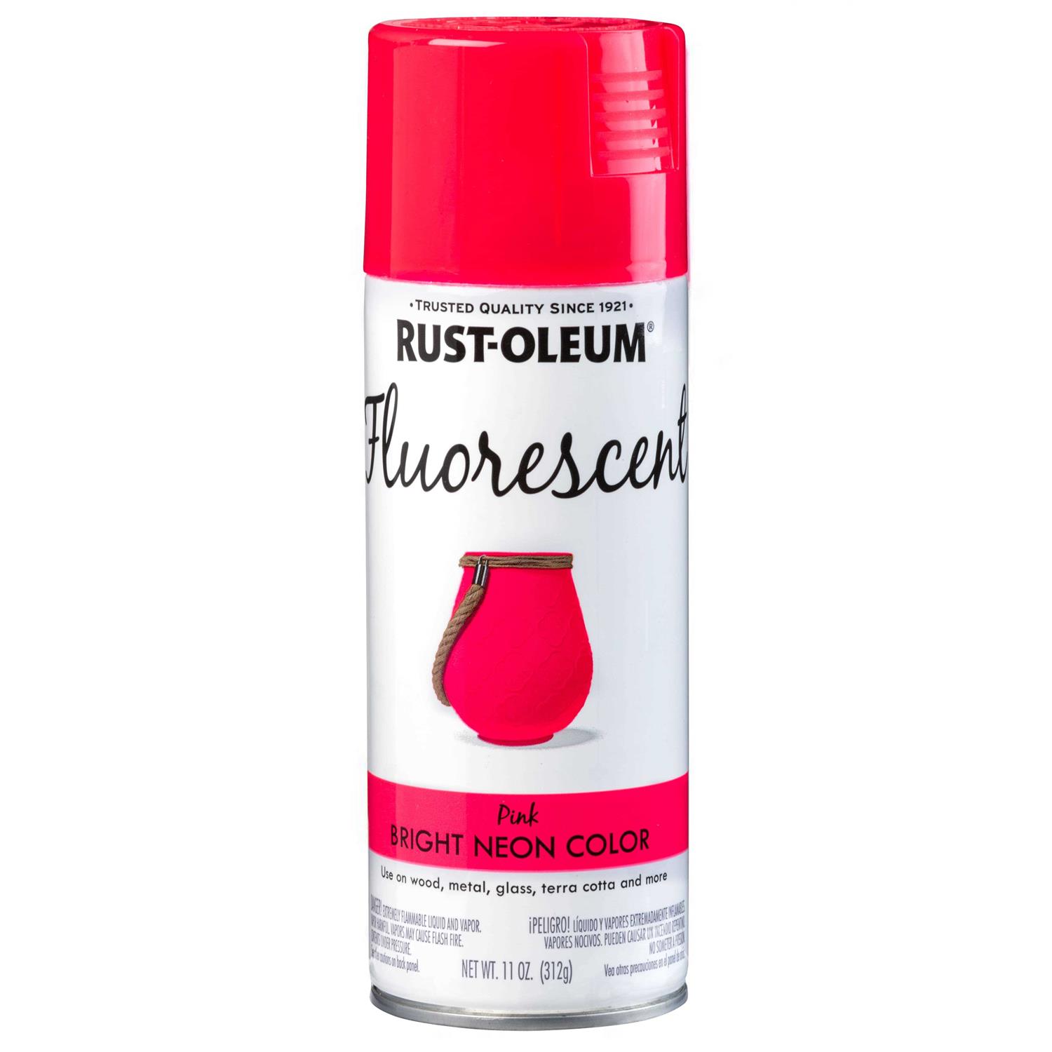 Fluorescent Green Rust-Oleum Specialty Fluorescent 11 Ounce Spray Paint adds vibrant color to crafts, toys, sporting goods, decorations and more. Apply to any surface. Creates high visibility when stenciled or sprayed directly to objects. Fast-drying. For indoor and outdoor use. Also great for stenciling, marking, color-coding and wherever high visibility is desired. Good for use during Halloween or hunting season. For best results undercoat with flat white paint to maximize neon effect.