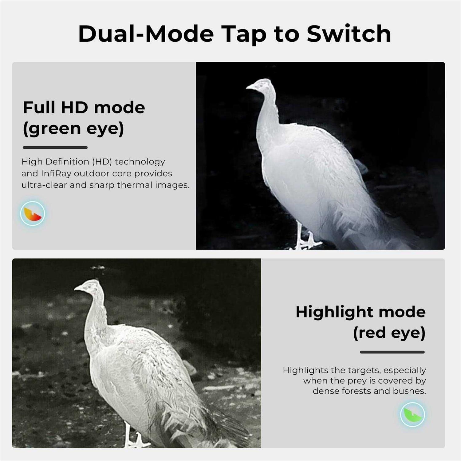 2×~15× Zoom to see ultra-far night vision:|| The InfiRay T2 Pro night vision monocular is a handheld device. 2X~15X Zoom to See Ultra-Long Distance,the T2 Pro thermal monocular has an adjustable lens of 13mm ≈ lens of 18.3mm @17um. – Swipe with two fingers to easily zoom in and out within 2×~15×, which makes hogs up to 660 yards away clearly visible. 12μm 256X192 Resolution:|| high-definition outdoor detector, The iOS Only InfiRay T2 Pro infrared monocular is an HD thermal imaging device for use in security, hunting, and other outdoor activities. It has a resolution of 256×192 and a detection range of up to 1300m. Quickly locating Target:|| hot spot tracking, The iOS version InfiRay T2 Pro Thermal Monocular quickly locates targets and tracks their heat signature, making it easy to identify and engage them even in challenging environments. Ninja Mode:|| Exclusive non-exposure technology ensures complete stealth while you’re outdoor. No worry about disturbing the prey. It can even be used for enforcement, patrolling, rescue, security monitoring, property protecting, etc. Dual-Mode Tap to Switch:||Full HD mode (green eye): High Definition (HD) technology and InfiRay outdoor core provides ultra-clear and sharp thermal images. Highlight mode (red eye): Highlights the targets, especially when the prey is covered by dense forests and bushes. Specification: Model :T2 Pro-i – OSSystem: Support iOS system. Obeserving Distance: 1300m APP name: Search Resolution:256×192 Pixel Pitch: 12m Spectral Band: 814m Focal length:13.0mm FOV:13.6×10.2 Focus Mode:Manual Frame rate:25Hz NETD:50mk MRTD:500m – K Operating Temperature:-20°C+80°C Temperature Measurement Range:0°C+80°C Power Consumption: 350m – W Weight(With Lens): 20g Size:26mm×26mm×26.6mm Supporting system:Android 6.0+ Image Enhancement:Digital Detail Enhancement (DDE) Reticle: Support,With hot/Cold Spot tracking. Color palette: Highlight,White hot,black hot,red hot,and other pseudo colors. Secondary development: Support1X4X cintinuous digital zoom Video saving:Support phone and video saving. APP Updating: Support app online uodating Cross cursor:Tracking and focusing