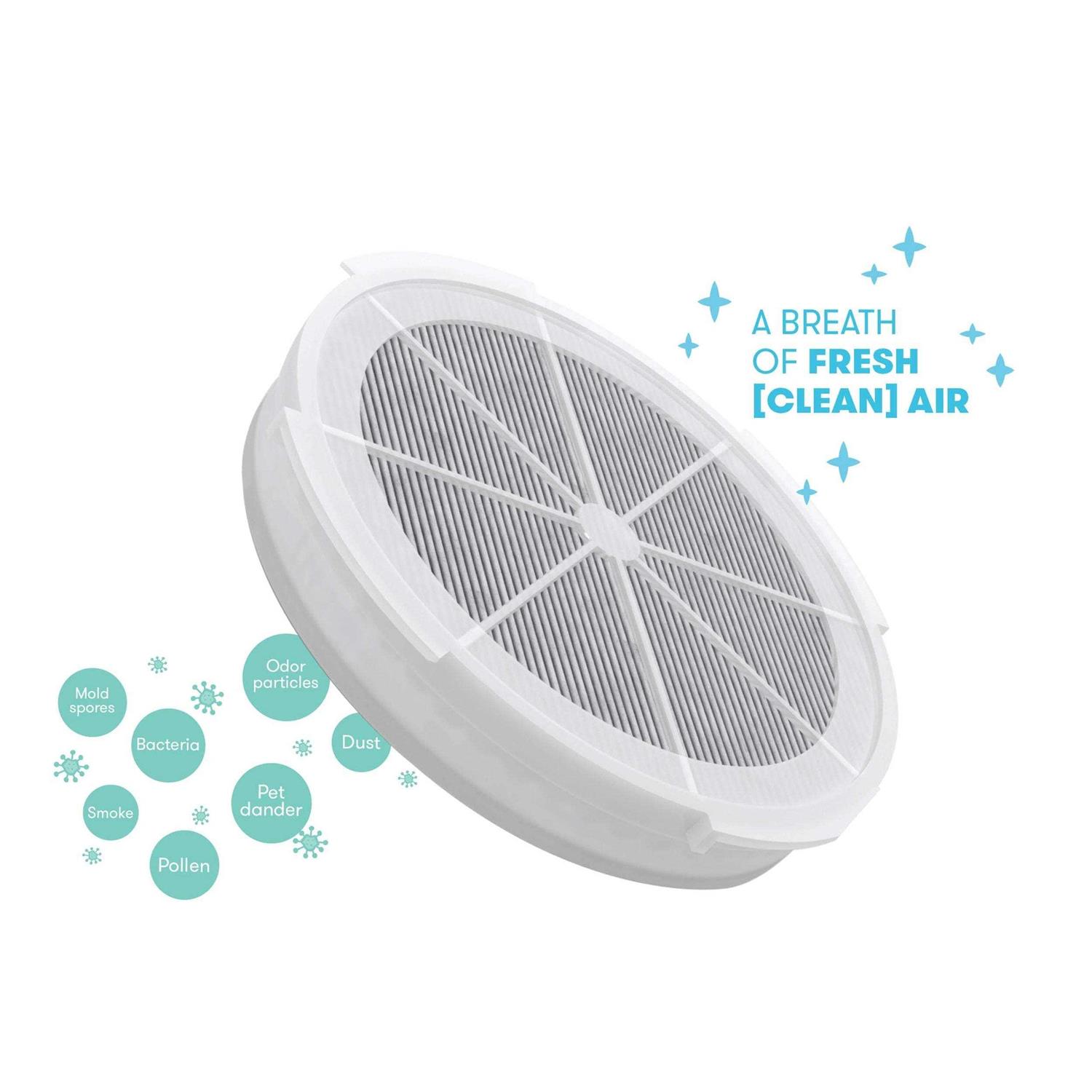 Keep replacement filters on-hand so your 3-in-1 Air Purifier + Sound Machine + Nightlight can continue removing dust mites, mold spores and air pollution. Switch out the HEPA activated carbon filter every 90 days and keep breathing easy. Air Purifier sold separately.
