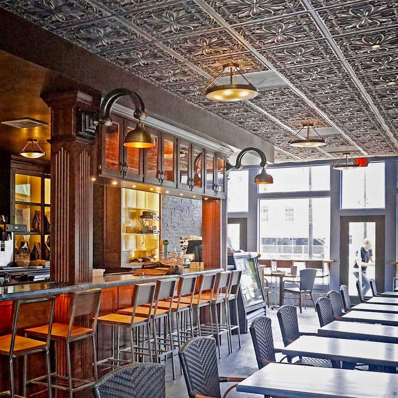 Milan Ceiling Tile from our From Plain To Beautiful collection in antique taupe finish can be used for commercial or residential applications either glued over most stable surfaces or dropped into a grid system. The panels are made of PVC. The size is 23-3/4 in. x 23-3/4 in. Depth of the design is 1/4 in. Overlapping edges for seamless look.