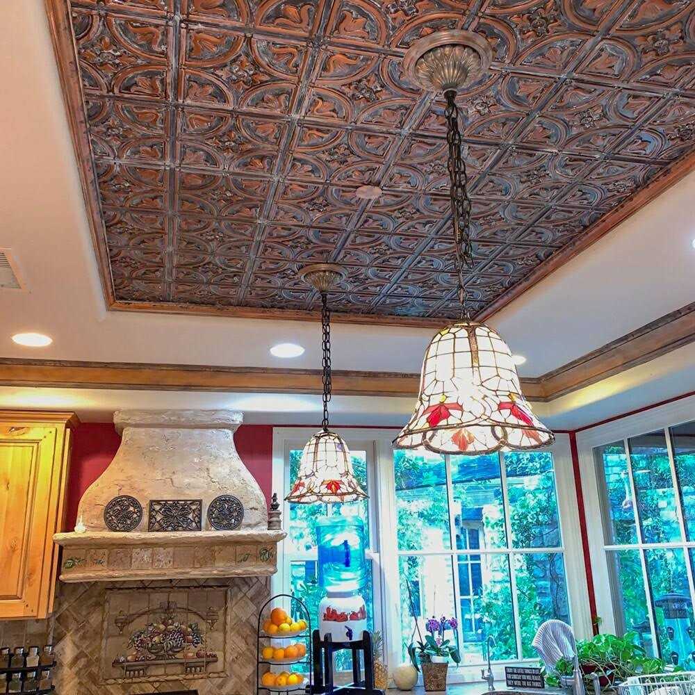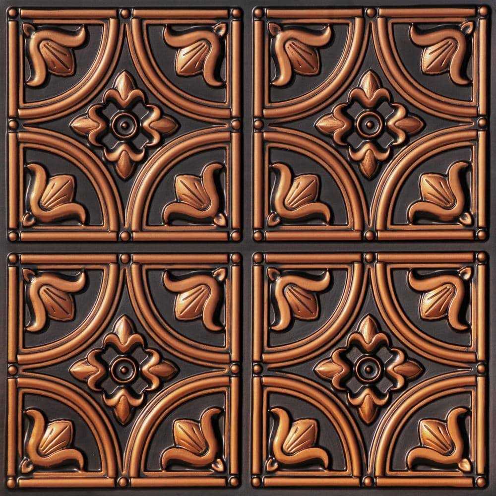 from Plain to Beautiful in Hours Tiny Tulips Faux Tin/ PVC 24-in x 24-in 10-Pack Antique Copper Textured Surface-Mount Ceiling Tile | 148AC-24X24-10