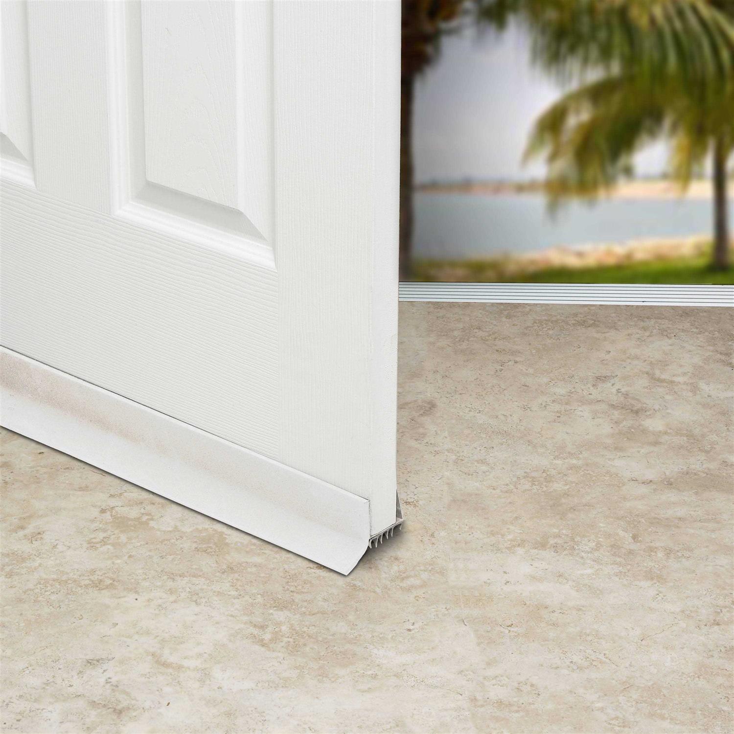 Use a Frost King door bottom to help seal out drafts coming in under your door. They are available in a variety of shapes, materials and colors to fill your every need. This slide-on door sweep/draft stop keeps warm air out in the summer and cold air out in the winter. The sweep and fins block out drafts and dust. Saves energy and money.