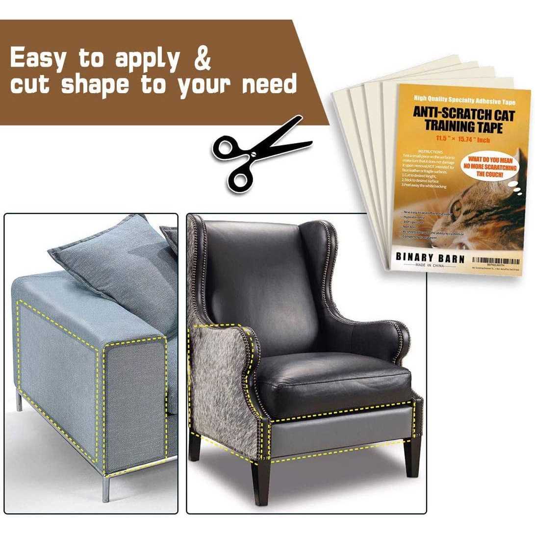 cat scratch deterrent tape, Cat furniture protector tape, Cat tape, Cat furniture guard protector **TRAINING OUR PETS TO HAVE A GOOD HABIT**- their habit is to hate the sticky things. Anti Cat Scratch deterrent Tape can let your beloved furry friends stay away from the area, and tell them not to scratch new sofas, curtains, tables Legs or hardwood/composite. The pets will go back a special area to scratch. **UITRA-THIN (0.01mm),STRONG ADHESIVE TRANSPARENT DOUBLE-SIDED TAPES**–Unlike other anti-scratch tape, It is fully transparent and unnoticeable. When your baby pet grabs or licks your sofa or other furniture, it will be repelled by the stickiness. After a few times, it will be trained to avoid the places that make it annoying. **SAFE,ENVIRONMENTALLY FRIENDLY,NON-TOXIC**- Our Cat scratch training tape is a safe, environmentally friendly, non-toxic, medical grade adhesive that does not compromise fabric, wood or other surfaces and provides 100% safety for your home pet. **EASY TO APPLY-**-Our cat scratch deterrent double sided tape provide you LARGE(11.8” x 15.74”)size. you have to do is Simply (1) Use it as a whole or Cut the sheet to the desired size. (2) Peel off the white Composite paper. (3)Stick the cat training tape on to the area your cat likes to scratch (4)At last peel off the white Composite paper to expose the sticky front-facing tape side.