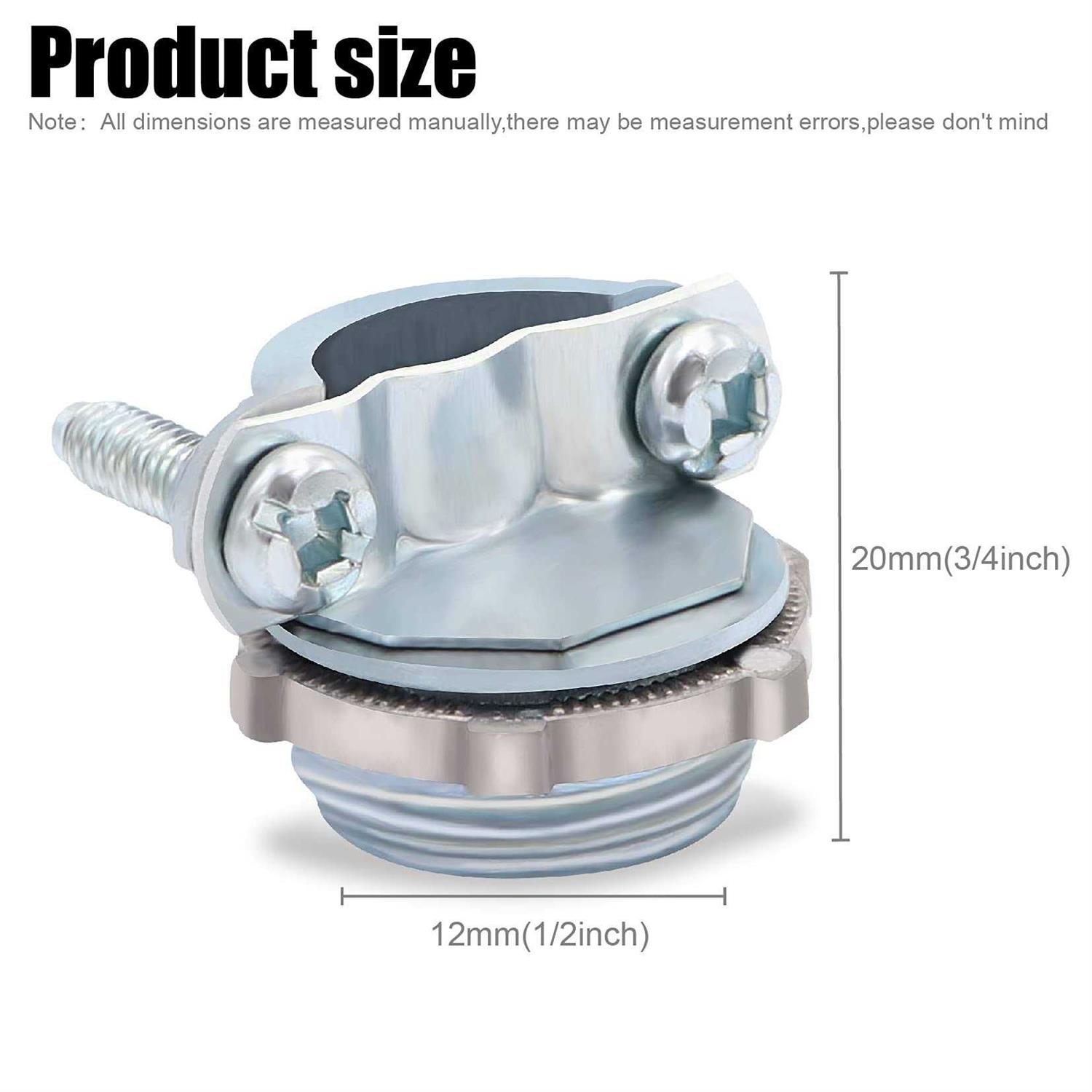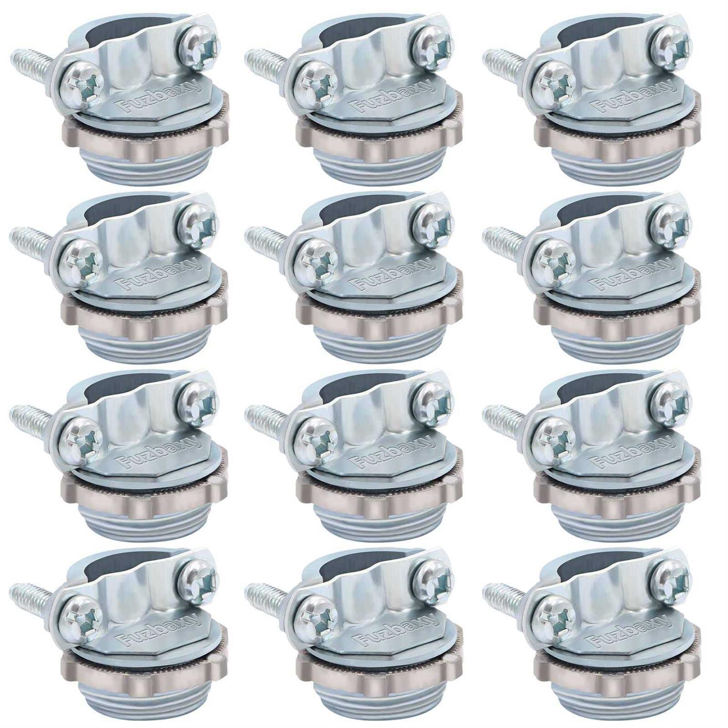 Fuzbaxy 12pcs 1/2Inch Clamp Type Cable Connectors for Metallic Conduit Protect Cables Silver-Zinc