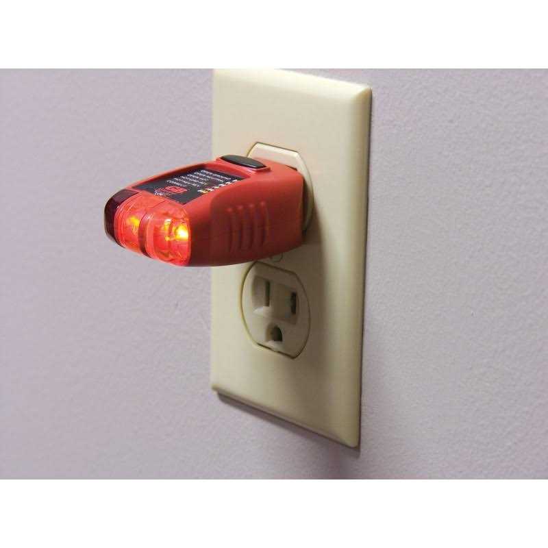 • GFCI Outlet Tester features indicating lamps that indicate 5 common wiring errors