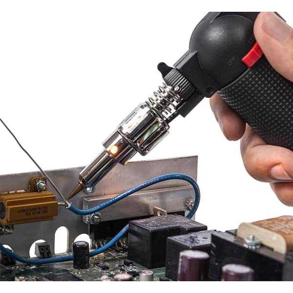 Gardner Bender Mini Butane Torch is ideal for heat shrink electrical tubing and terminals in splicing wire connections. The compact size is great for quick repairs in tight spaces. This 3-in-1 Pro Grade butane torch features continuous-on button for extended use and comes with soldering and blow torch attachments. Please use extra-caution when fueling.