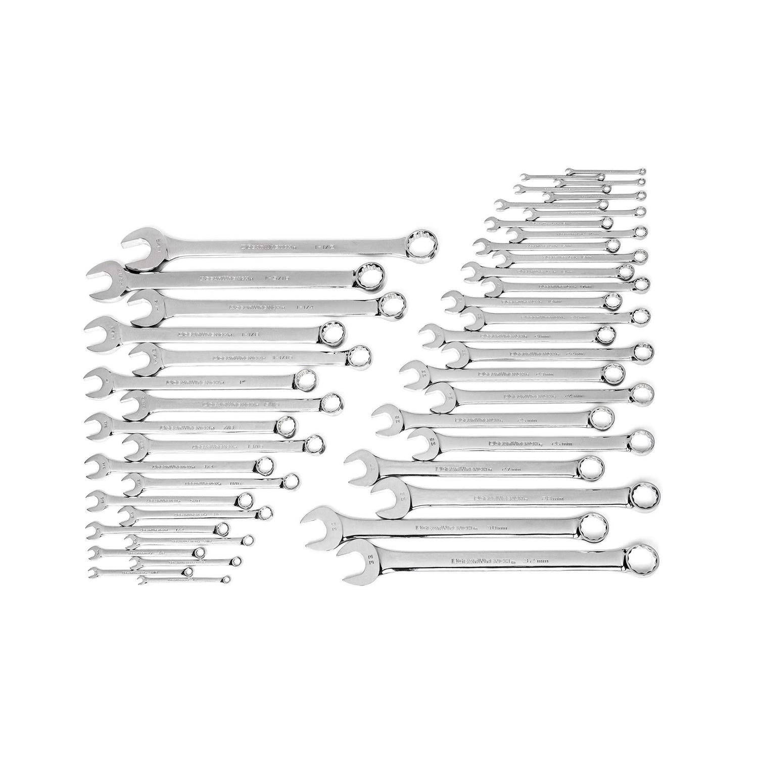 Features:. 44-pieces long pattern combination non-ratcheting wrench set SAE/metric. Long pattern combination wrench: 1/4″, 5/16″, 11/32″, 3/8″, 7/16″, 1/2″, 9/16″, 5/8″, 11/16″, 3/4″, 13/16″, 7/8″, 15/16″, 1″, 1-1/16″, 1-1/18″, 1-1/4″, 1-5/16″, 1-1/2″ (6mm, 7mm, 8mm, 9mm, 10mm, 11mm, 12mm, 13mm, 14mm, 15mm, 16mm, 17mm, 18mm, 19mm, 20mm, 21mm, 22mm, 23mm, 24mm, 25mm, 26mm, 27mm, 28mm, 30mm, 32mm) Item weight: 26 lbs.