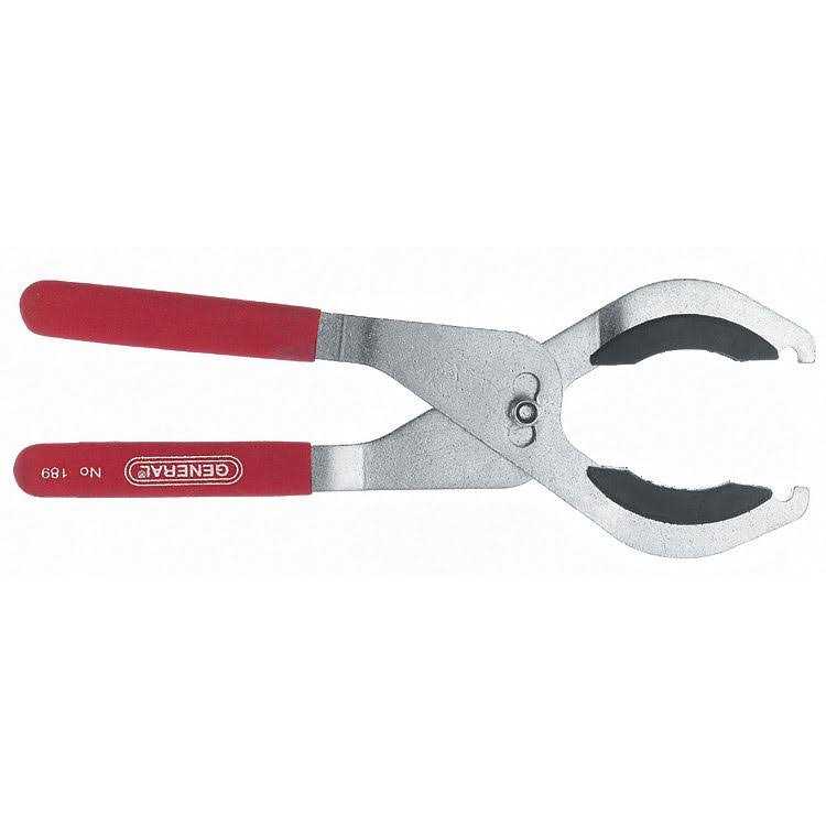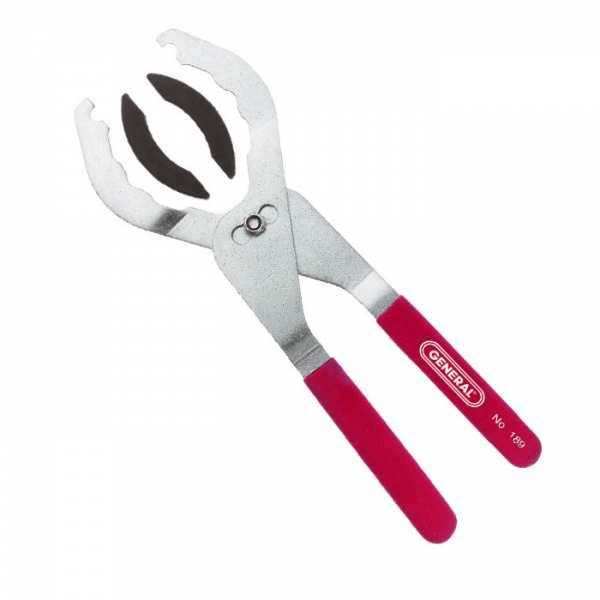 Save precious room in your toolbox with General’s all-in-one Under sink Drain Pliers. The exclusive, universal jaw design will fit all sink, drain, slip, trap and compression nuts, as well as basin and sink lock nuts. The three-position slip joint allows the pliers to work on all 1-1/4-inch, 1-1/2-inch and 2-inch drain systems. And with a 4-inch jaw opening, the Under Sink Drain Pliers will fit large strainer nuts, and can even be used for opening jars and removing automotive oil filters. The Pliers include a set of removable rubber jaw covers to protect plated nuts or pipes from damage. The rubber jaws also make the tool safe for use on plastic nuts.