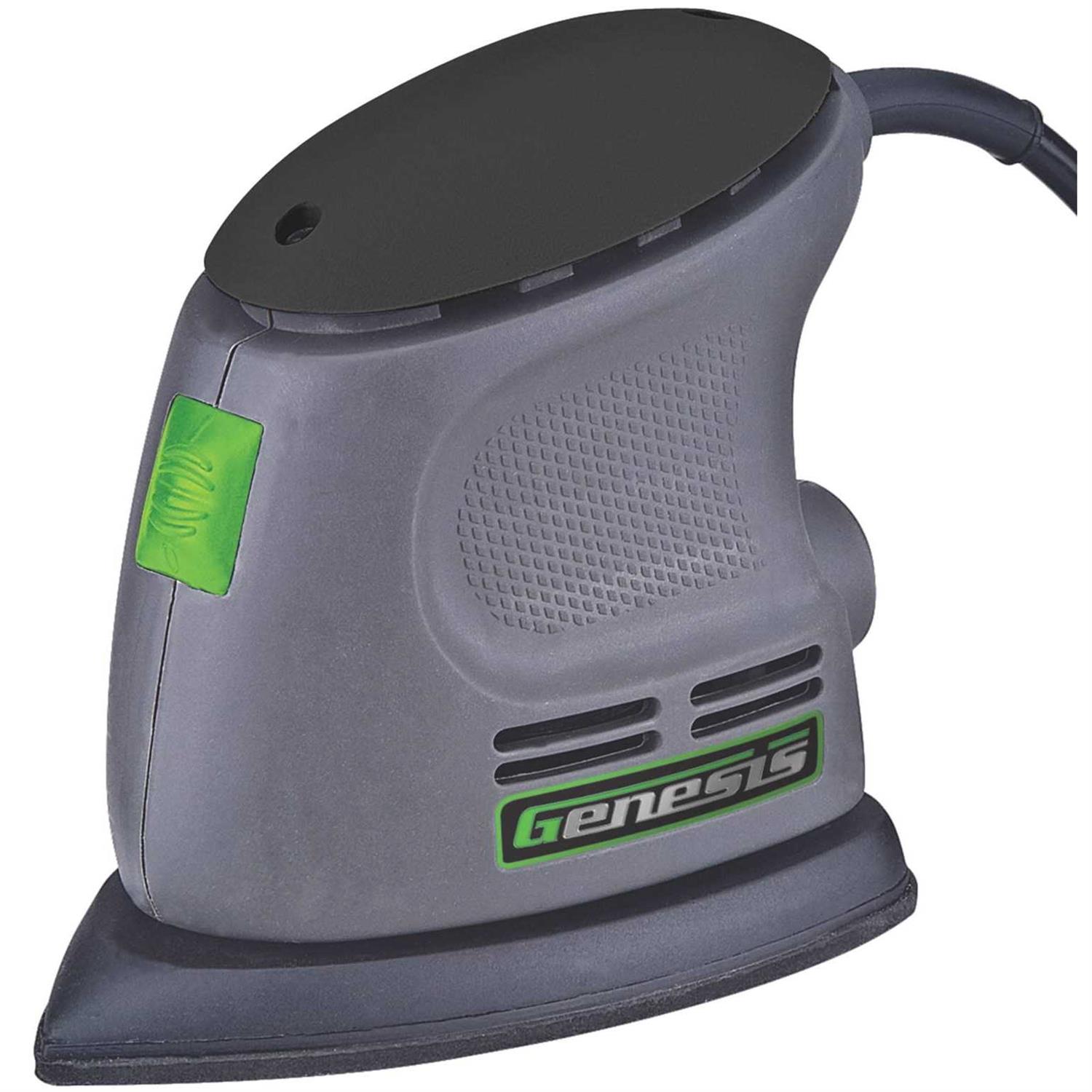 The Genesis GPS080 Corner Palm Sander has a unique iron shape so it can be used as a regular palm sander or as a detail sander in corners and tight spots. This tool uses a convenient hook and loop paper attachment system. We include a small sandpaper assortment to get you started, but after that, any standard mouse style sandpaper will fit your Genesis Corner Palm Sander.