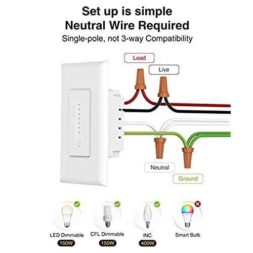 Smart Dimmer Switch Work with Alexa Google Home, Neutral Wire Required 2.4ghz UL