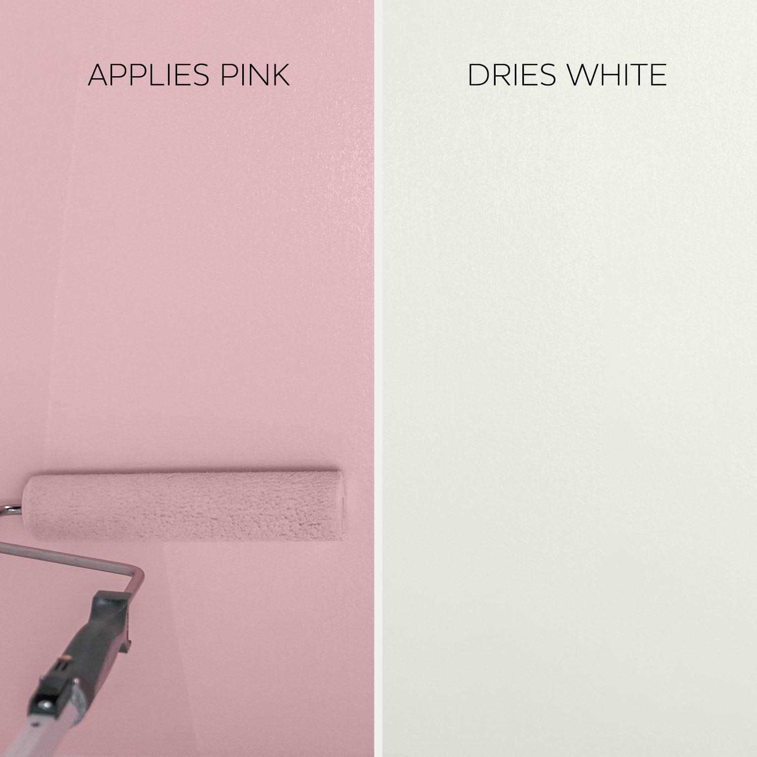 - Never miss a spot- goes on pink and dries to white so you can clearly see which areas are left to paint