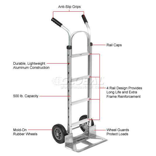 Global Industrial – 168260 – Aluminum Hand Truck – Double Handle – Mold-On Rubber Wheels