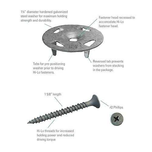 Flat Washers by GoBoard. Details:Use with ¼”, ½” and ⅝” GoBoard and spaced 100 fasteners and washers per box, 1.4 lbs box. 1- ¼” diameter hardened steel washer for maximum holding strength and durability. Tabs for pre-positioning washers prior to installing. Reversed tab prevents washers from stacking in package. GoBoard washer fasteners can be spaced at 12 inches.
