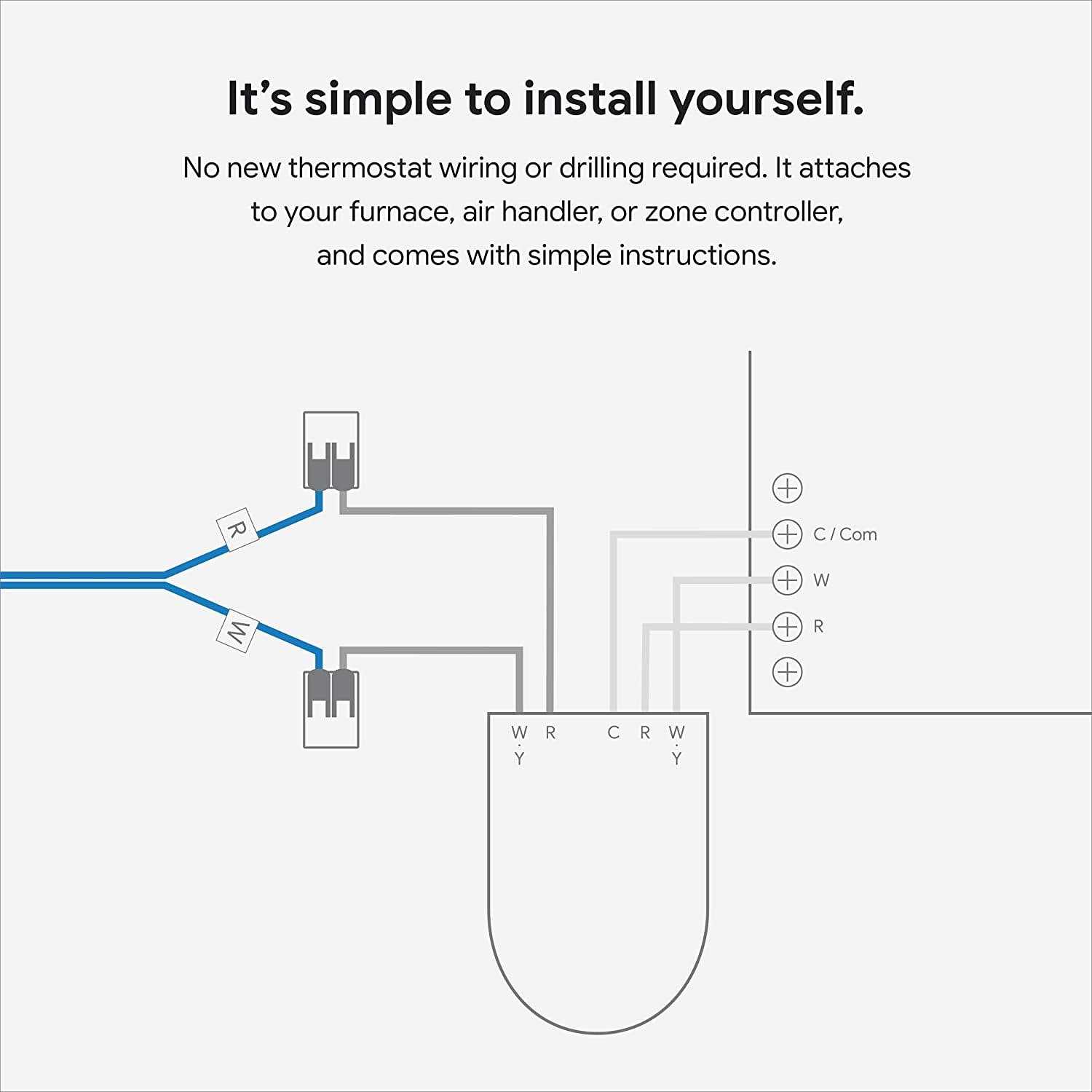 The Nest Power Connector is a simple and affordable alternative to a C wire if your heating and cooling system needs one to power your Nest thermostat. You can install it yourself without having to add new wiring. For homes that don’t have a C wire, the Nest Power Connector is an affordable alternative. It attaches directly to your furnace, air handler, or zone controller, and it doesn’t require any new wiring. And with simple instructions, you can even install it yourself. The Nest Power Connector doesn’t require any new wiring or drilling. It attaches to your furnace, air handler, or zone controller and comes with simple instructions for easy installation. And if you don’t want to install it yourself, you can always hire a pro. The Nest Power Connector is affordable, and costs much less than hiring an electrician to install a new C wire through your walls. The Nest Power Connector resists dust and water, and is made from 46% recycled plastic. The wire connectors and sticky pad are designed for easy, mess-free installation.