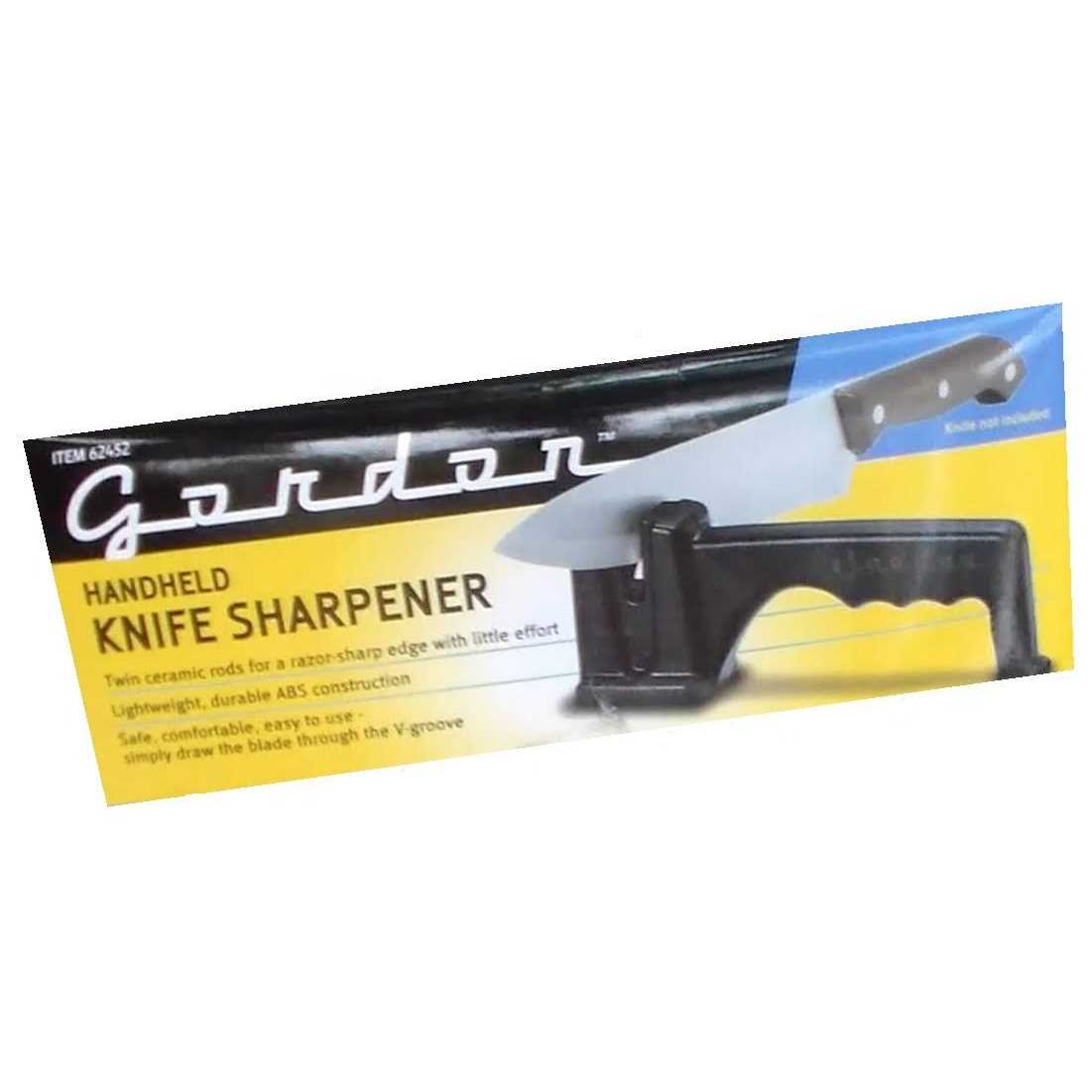 One of the best knife sharpeners you can find is also one of the safest and easiest to use. Simply draw the blade past the V-groove ceramic rods and your blade will as sharp as new. Twin ceramic rods for a razor-sharp edge with little effort Lightweight, durable ABS construction Safe, comfortable, easy to use – simply draw the blade through the V-groove. Knife not included.
