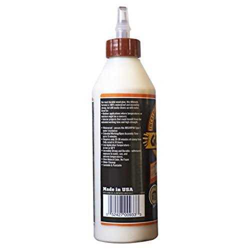 Most durable construction wood glue, this Ultimate formula is 100% waterproof and incredibly strong, but still easily cleans up with water. It is great for outdoor applications where temperatures or moisture might be a concern, as well as interior projects that could benefit from the extended working time and high strength. Requires only 20-30 minutes of clamp time and fully cures in 24 hours. Dries to a natural color, no foam. Sandable and paintable.