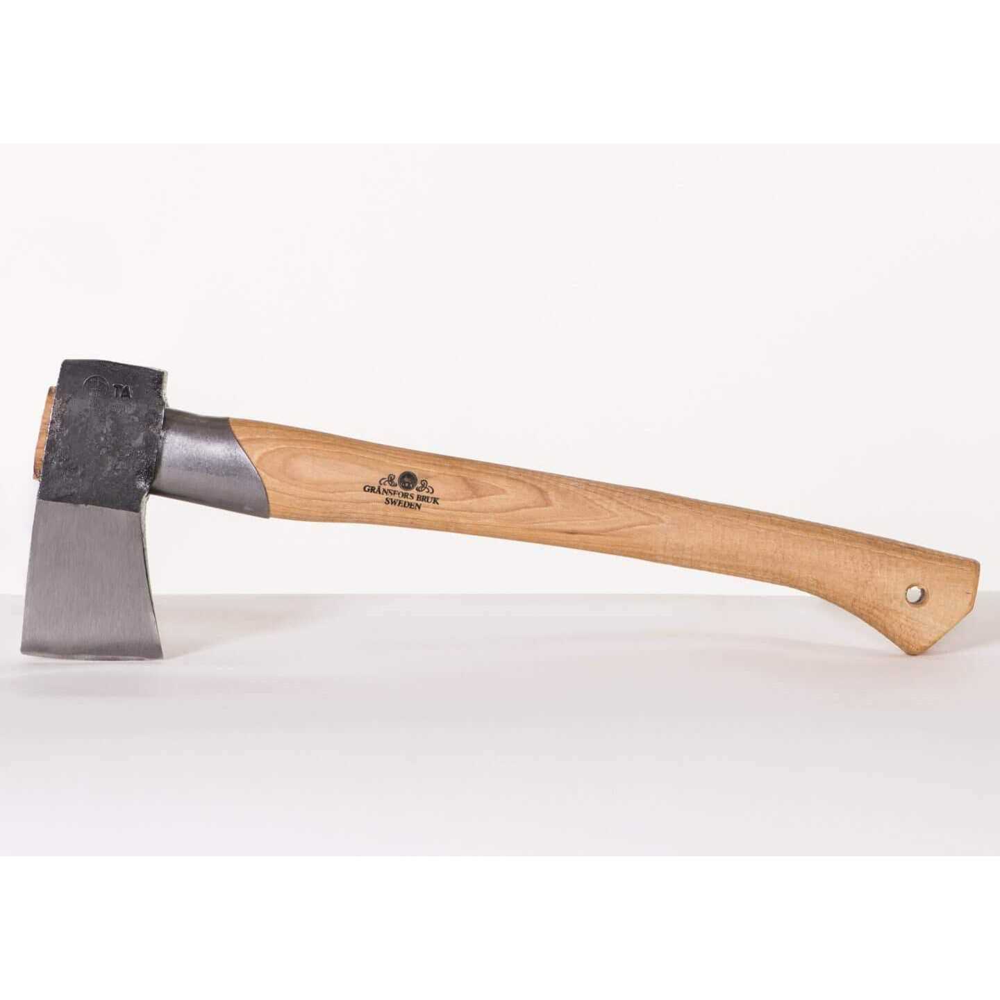 The splitting axe from Gränsfors Bruks is the compromise between a hatchet and an axe. Relatively compact at 48 cm but heavy enough at 1.5 kg to split even larger sticks of wood. Like all Gränsfors hatchets and axes, the splitting axe is equipped with a low-vibration hickory oak shaft and a leather sheath.