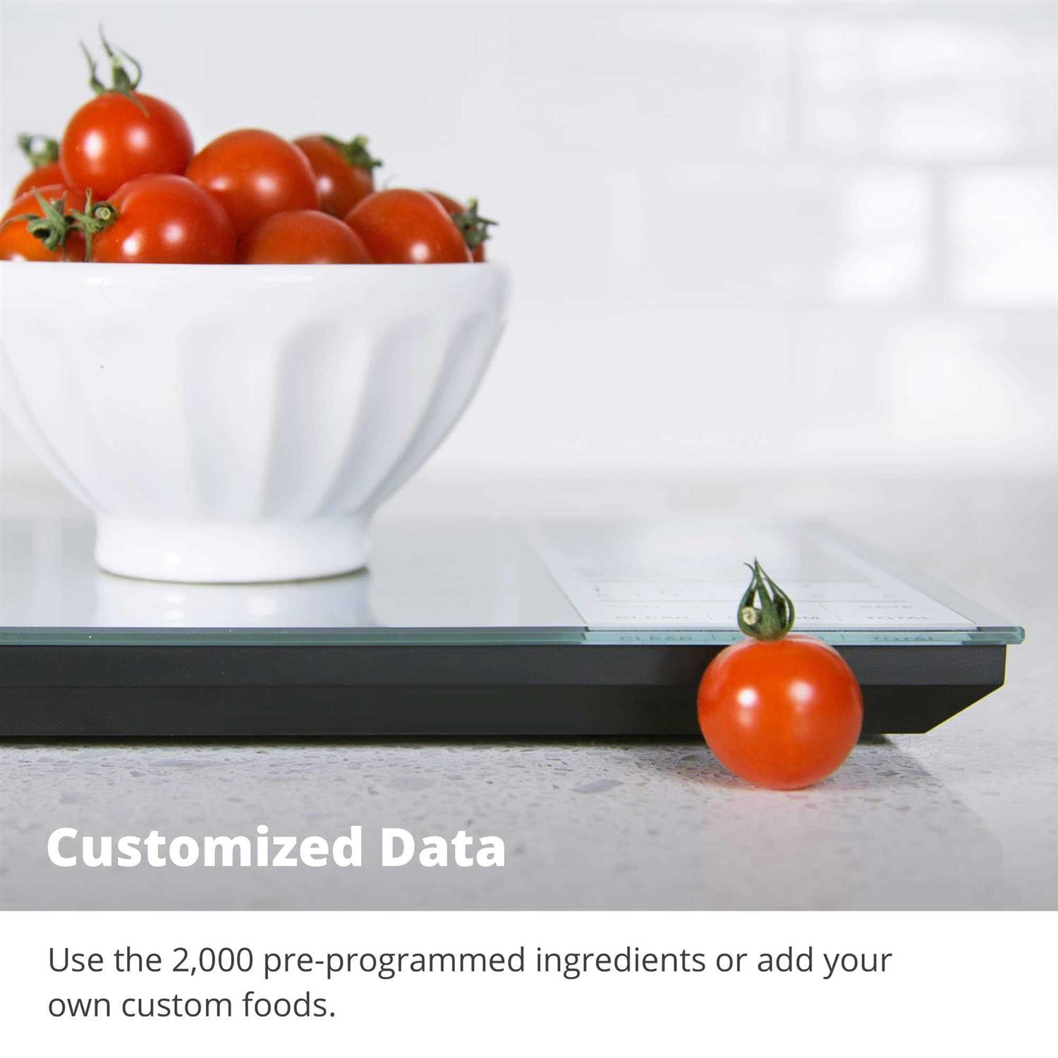 The Perfect Portions Scale is a scale and nutritional calculator in one. Using the familiar “Nutrition Facts” label, it clearly displays the nutritional content (calories, fats, carbs, sugars and more) of 2000 foods adjusted to your portion size. It allows you to see how many calories are in that handful of candy or track the sugar content of foods without labels. Unlike other nutritional scales, it breaks down the information into % daily value, tracks your daily total, and even lets you customize the scale by entering 99 of your own foods. It has an easy-to-clean, stylish glass-top surface and touchpad keys. The Perfect Portions Scale works with any diet to give you the information you need to help you control your portions and make healthy choices. Display weight in grams or lb oz with high resolution gradation (0.1oz/1g). Max weight capacity 10 pounds/5 kg). Batteries are included.
