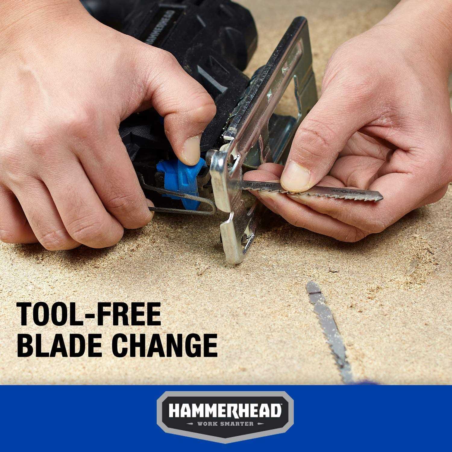 Hammerhead 4.8-Amp 3/4 Inch Jig Saw with 2pcs Wood Cutting Blades, Variable Speed and Orbital Function
