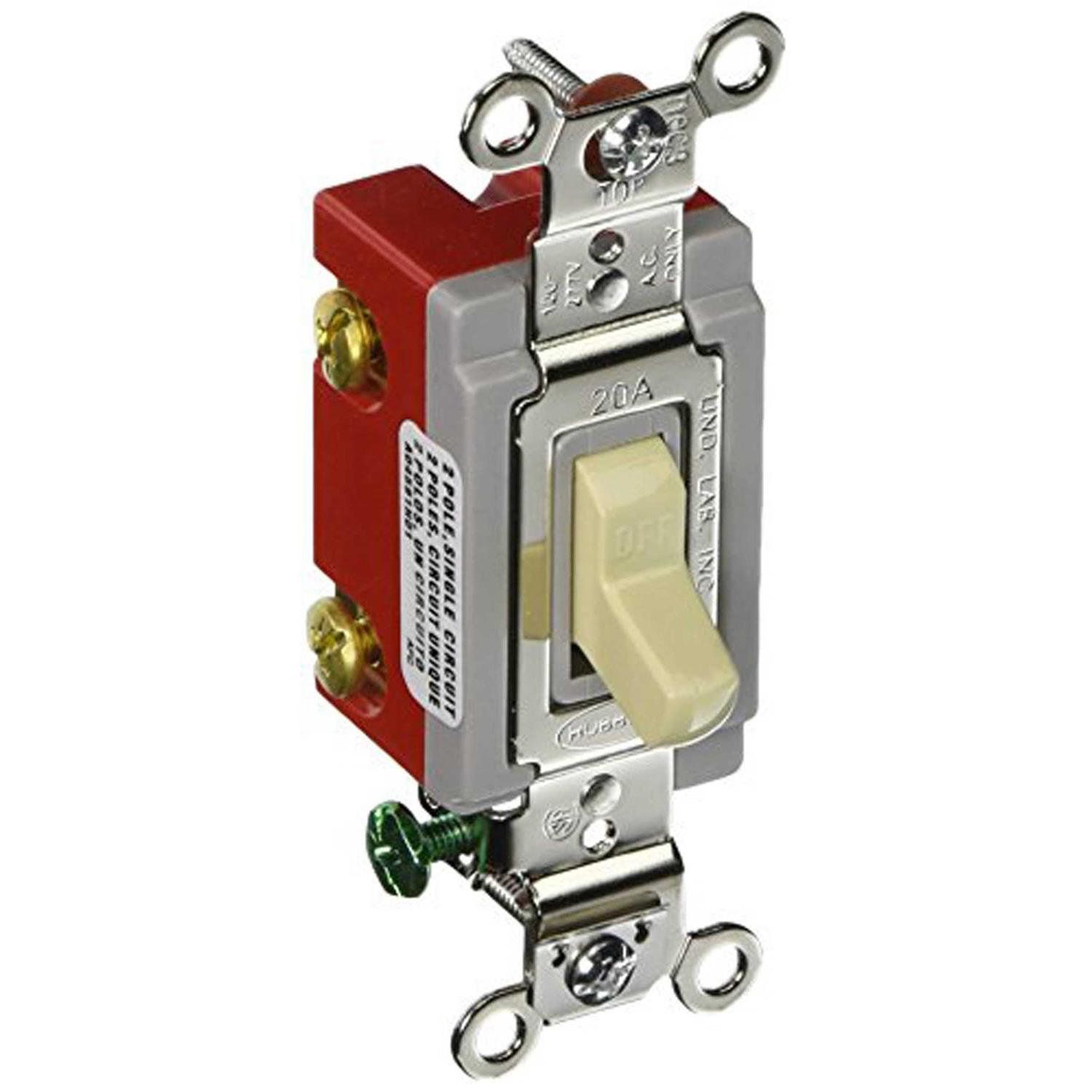 This switch features thermoset base and nylon toggle. It measures 4.063-Inch x 1.312-Inch x 1.13-Inch. Positive snap action switch with back and side-wired connection, accommodates terminal of size 14 – 10-AWG. It withstands dielectric strength of 1500-Volts. Color-coded base identifies amperage when terminating connections. Stainless steel automatic grounding clip of this switch ensures grounding continuity between mounting strap and metal wallbox. Switch contains large brass binding head screws with deep slots for secure wire connections. It comes with strip gauge to provide accurate wiring. Screw mount switch features silver alloy contact to offer long life, prevent sticking, welding and excessive pitting. Switch features nickel-plated steel strap. It withstands temperature rating of -40 to 75 deg C. Switch is UL listed, CSA certified and meets Federal specification/NEMA standards.